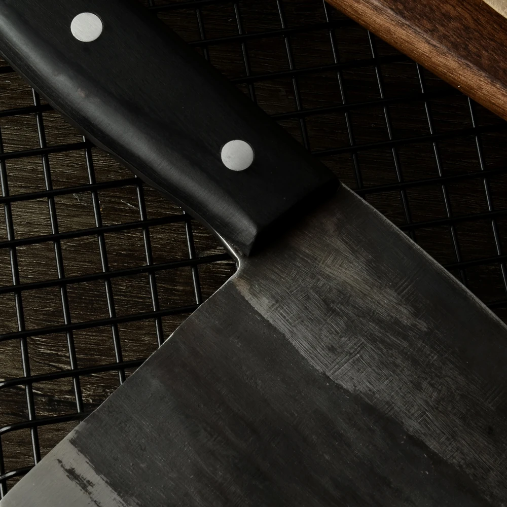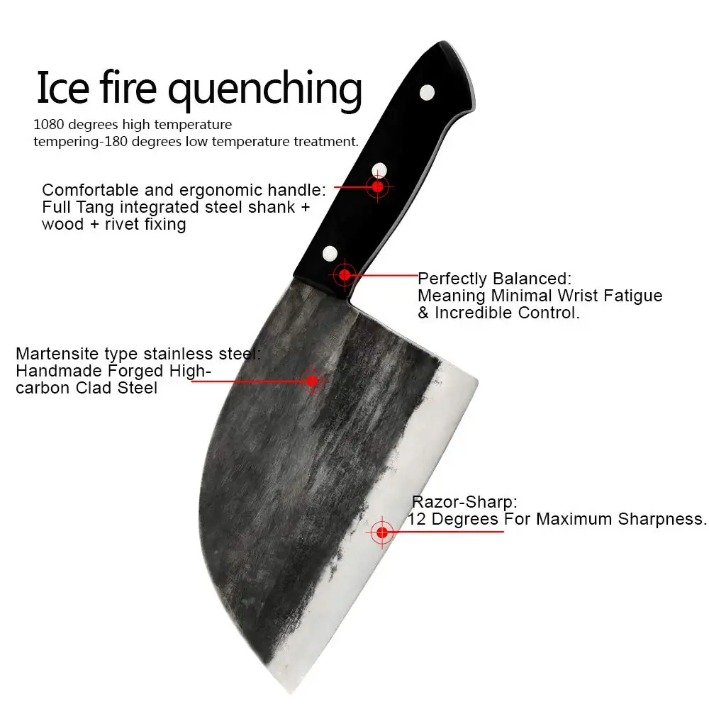 Этот нож шеф-повара мясника изготовлен из марганцевой стали, ручка и лезвие интегрированы без пайки, который является прочным и прочным для устранения сломанной ручки