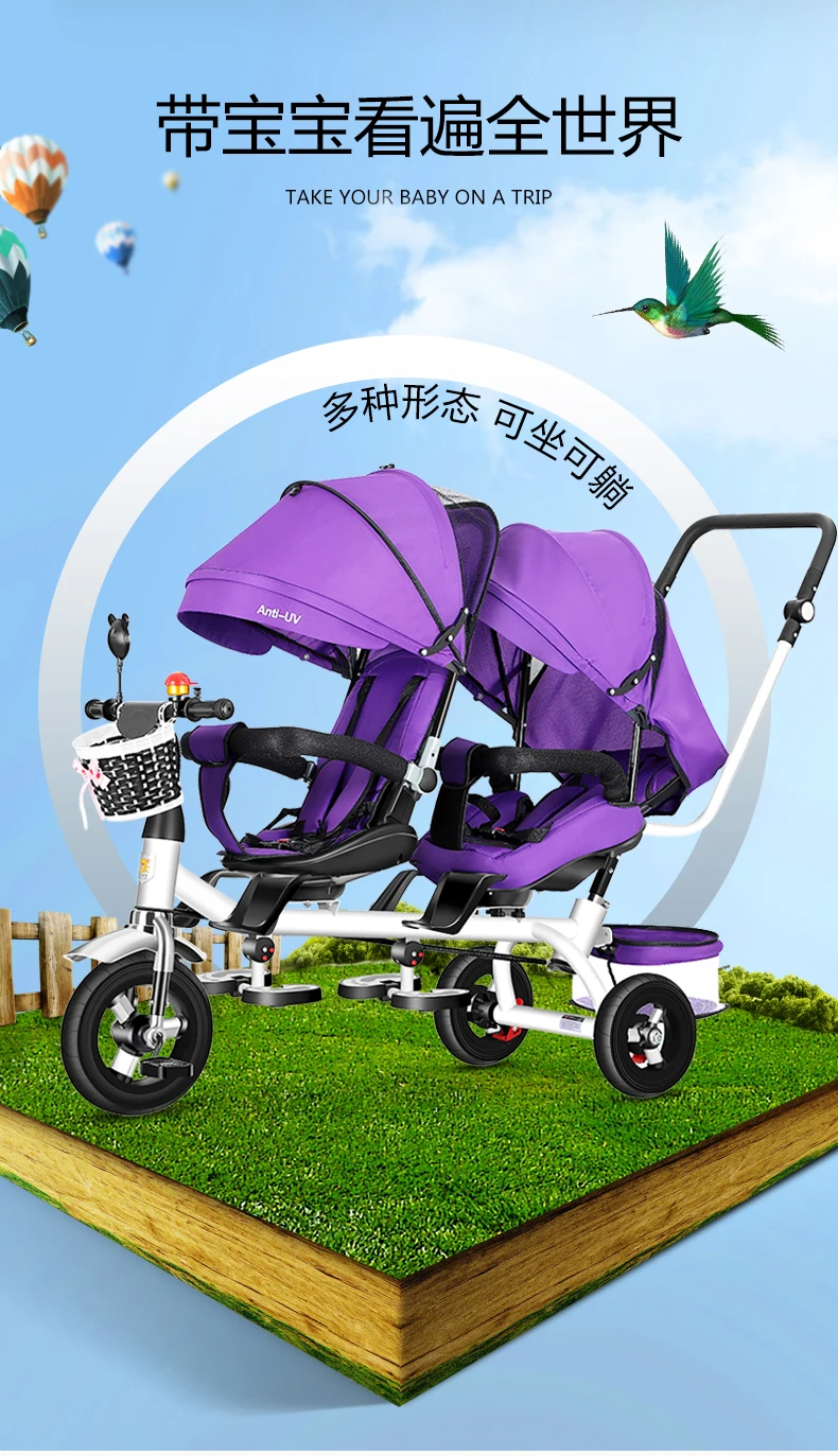 Портативная трехколесная коляска detecable Twins складная двухместная для коляски