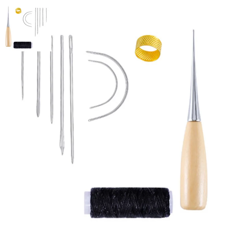 В комплект входят: 150D 12 м восковая веревка, коническая игла, наперсток, иглы.
