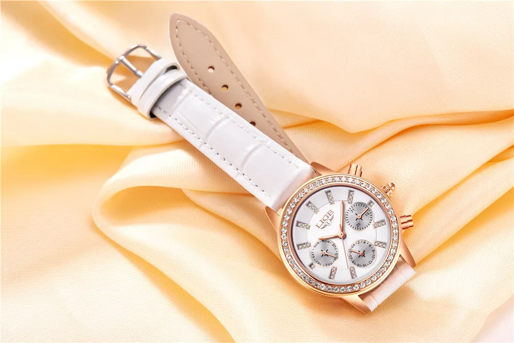 LIGE Топ люксовый бренд женские часы для отдыха модные кожаные кварцевые женские часы с бриллиантами Женские часы подарок Relogio Feminino + коробка
