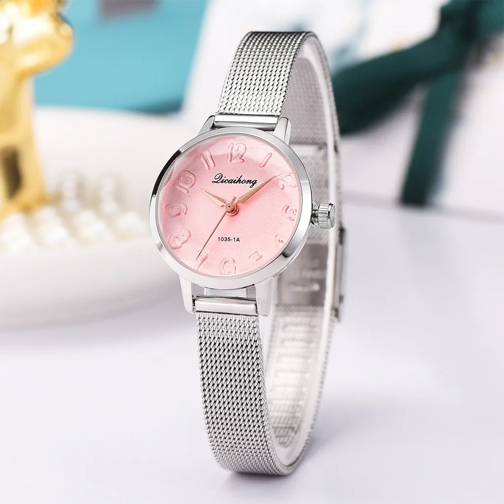 Модные Простые преувеличенные цифровые весы выпуклая сетка с кварцевыми женскими часами кварцевые часы бесшумные часы orologio donna 50