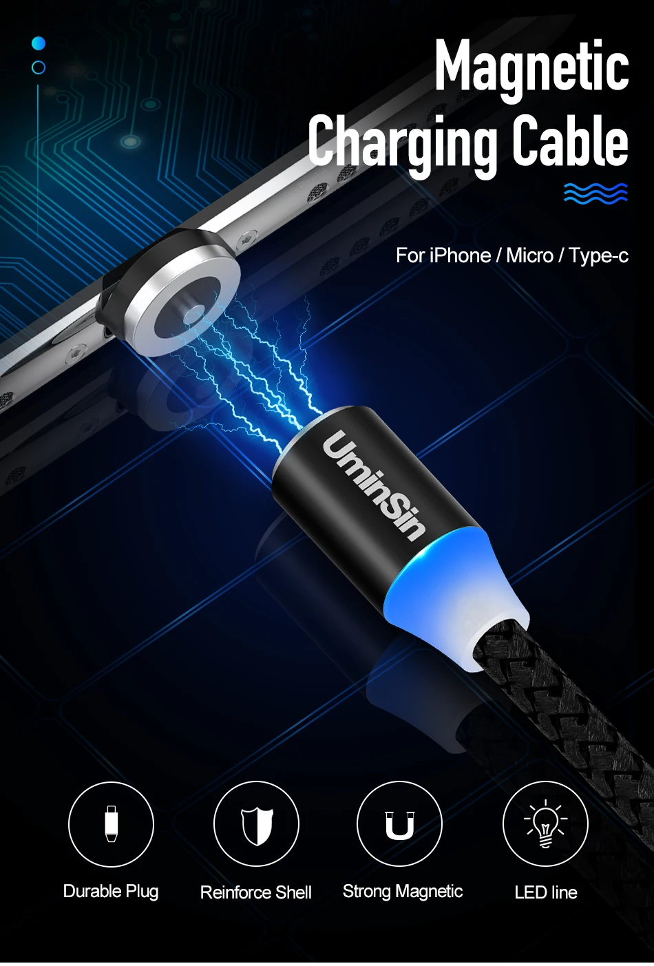 1. [Бренд]; UMINSIN 2. [особенность]: 360 градусов вращающийся круглый + светодиодный индикатор + сильный магнит + нейлоновый Плетеный 3. [Функция]: только поддержка зарядки.Не Поддержка данных Transimisson4. [Совместимость]: -> для iPhone X/8/8 Plus/7/7 Plus/6 Plus/6s/6 Plus/6s Plus/5/5S/SE/Xs Max/XR-> Для Samsung S8/S8 plus/Note 8/S6/S7/S6 edge/S7 edge/S5/S4/Note 2 3 4 5-> Для Xiaomi Redmi 4x/Note 4/Note 4x/3 s Pro/Note 3 Pro/Xiaomi 5/6-> Для Huawei P8 Lite/P9/P10/Vivo X9/X9s/X20/Oppo R9/R9s/R11