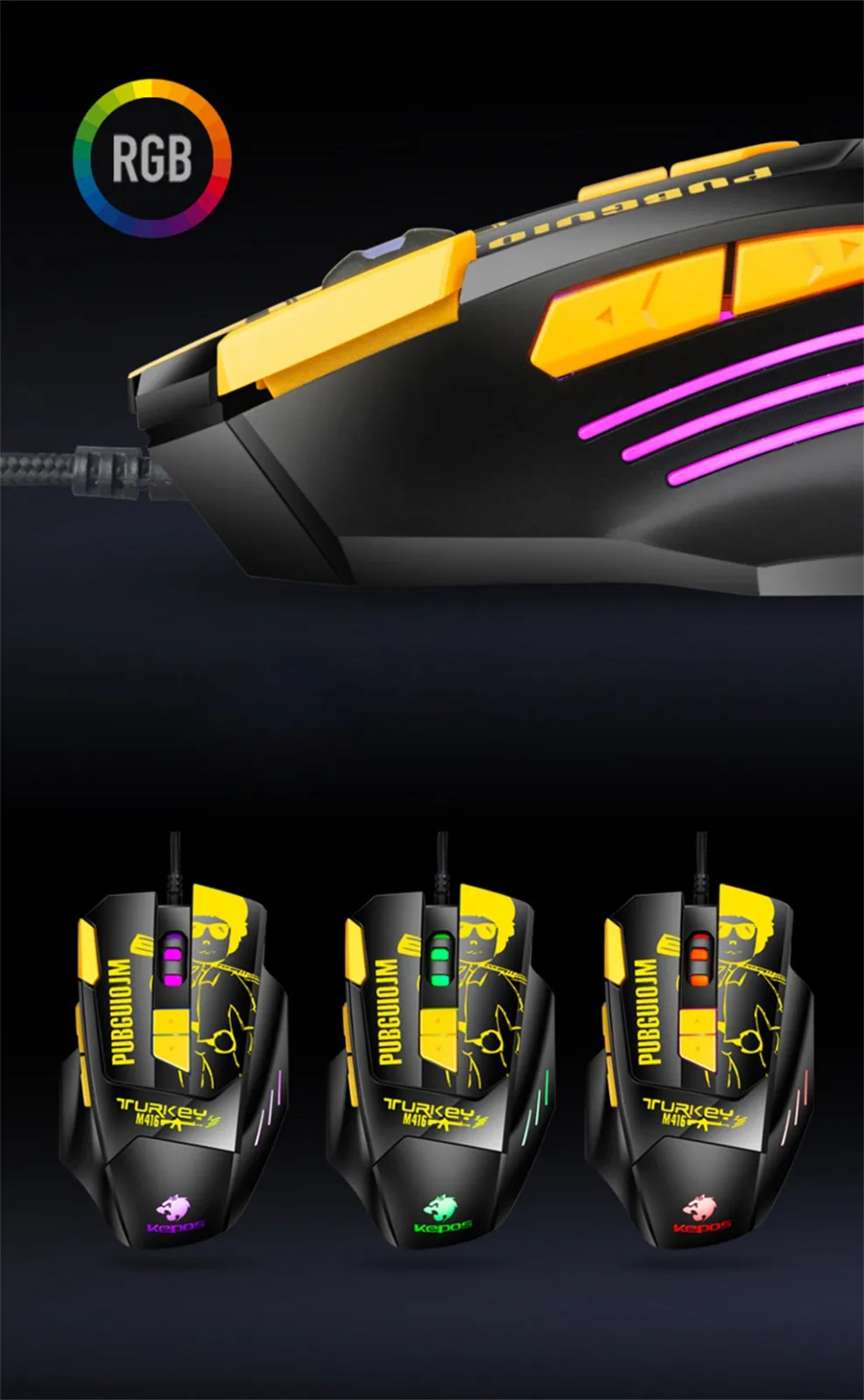 Проводная игровая мышь M416 с 8 кнопками, эргономичный дизайн, оптические мыши 4800DPI