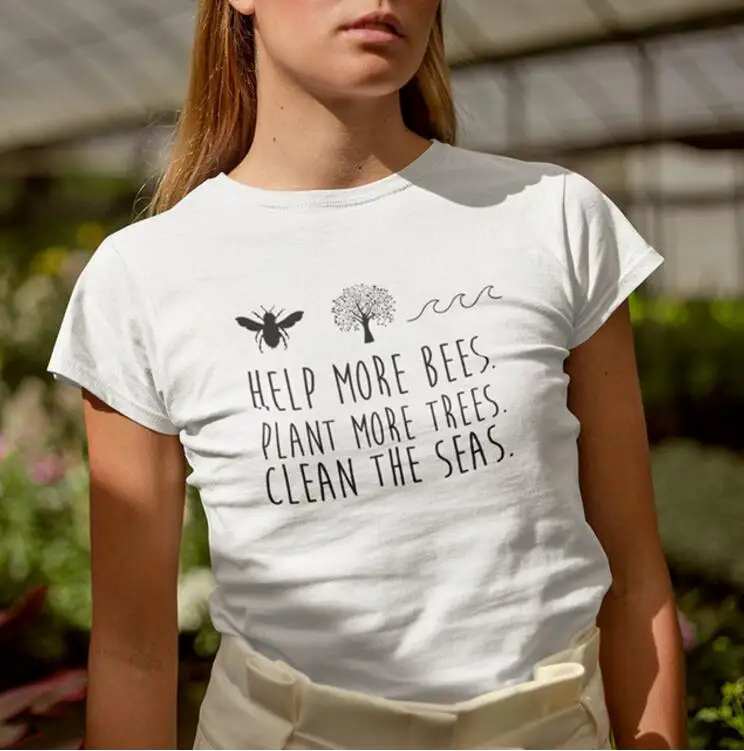 Help More Bees Plant More Trees Clean The Seas Graphic Tees женская летняя модная футболка 90 s уличная одежда футболки Прямая поставка