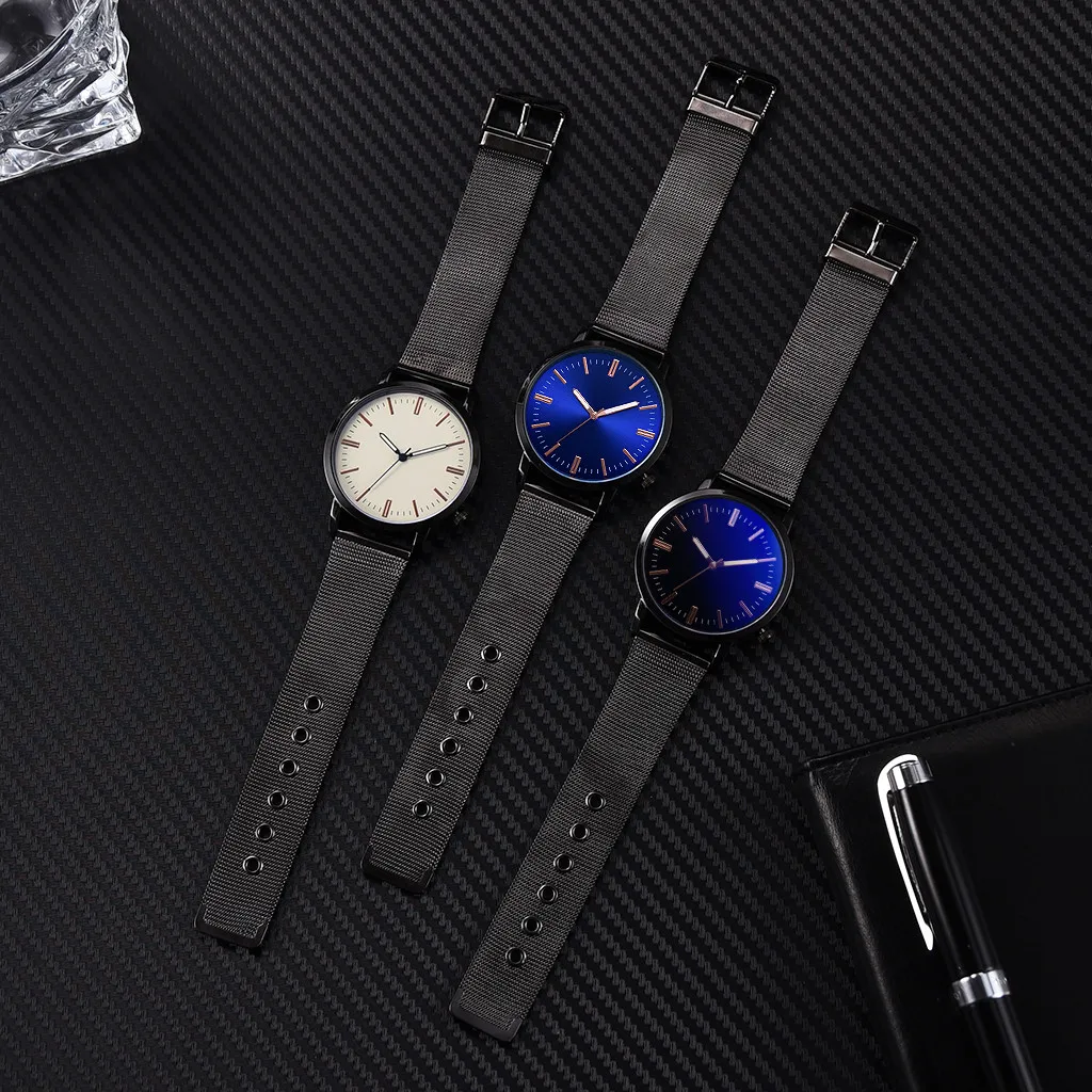 Ультратонкие часы для мужчин, мужские Модные, ненавязчивые, деловые, простые, индивидуальные, сетчатый ремень, сплав, часы relogio masculino #03