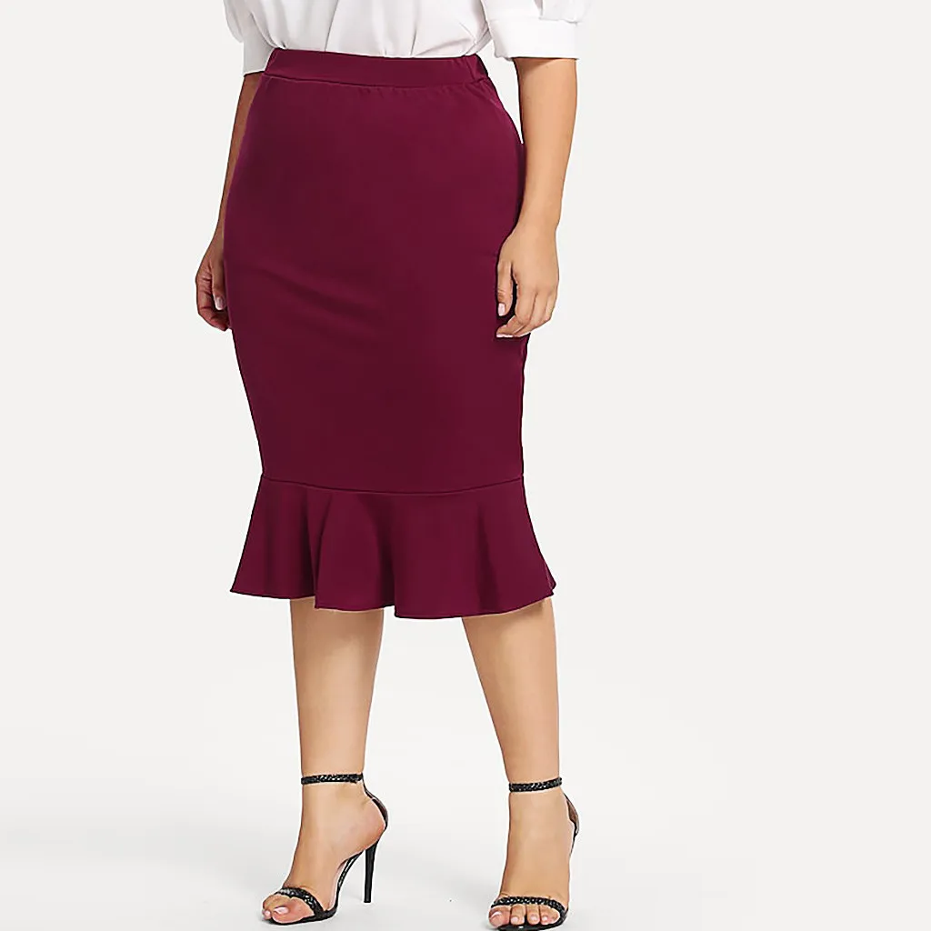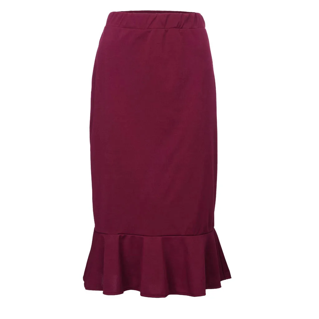 Особенности: повседневный, эластичный пояс, однотонный, подол русалки, юбка с оборками, повседневная одежда,Уличная одежда, Средняя талия.