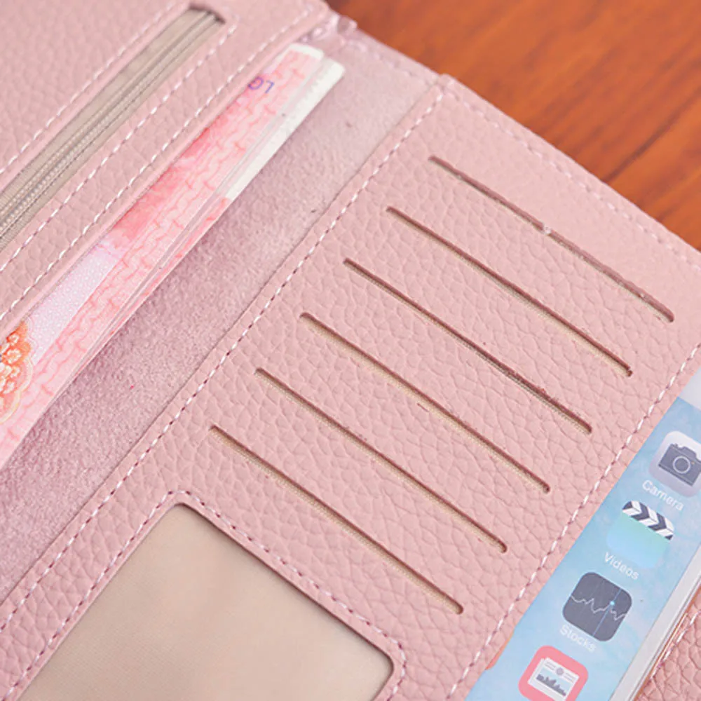 Розовый кожаный Длинный кошелек сумка монета карман держатель для карт женский