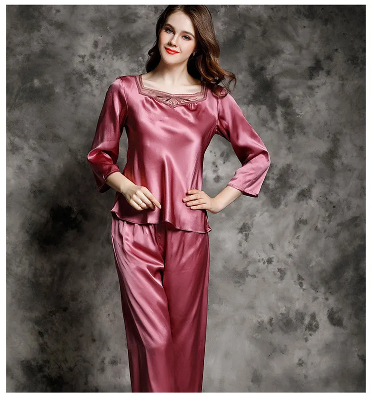 Бренд, 100% натуральный шелк, пижамный комплект для женщин, мягкая высококачественная одежда для сна, костюм со штанами с длинными рукавами, шелковая Домашняя одежда из тутового шелка, пижама Mujer