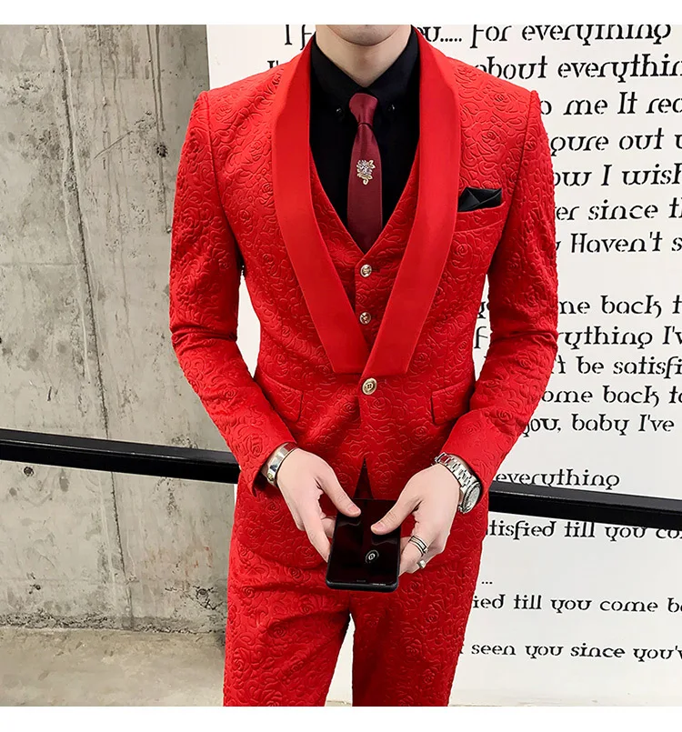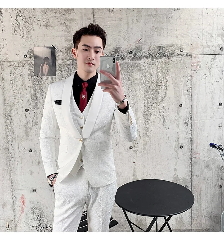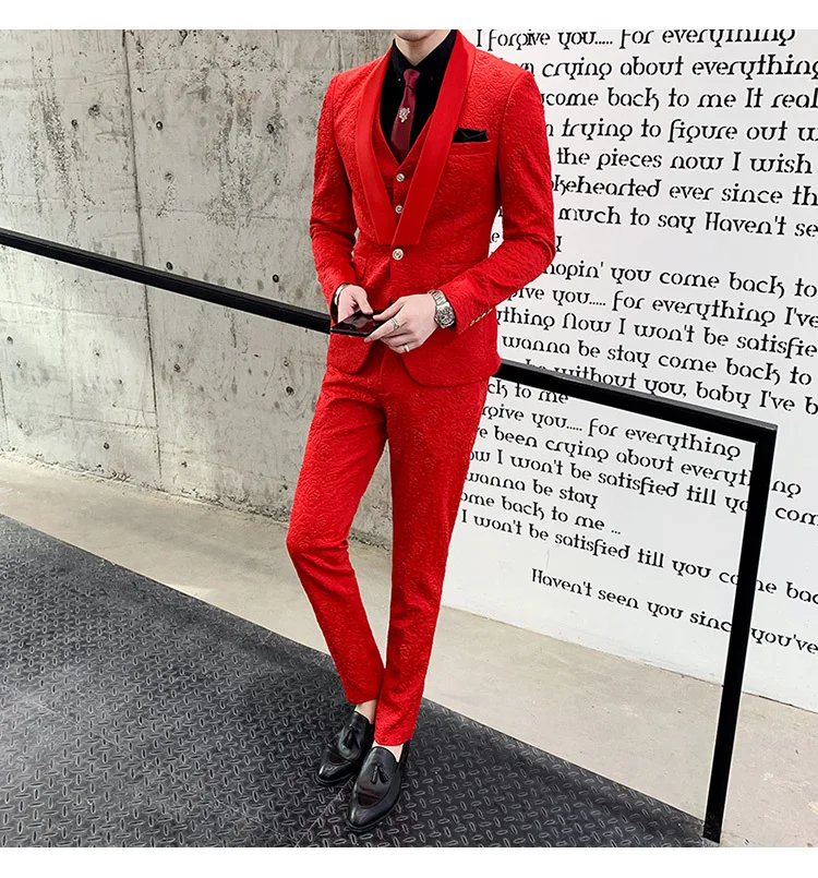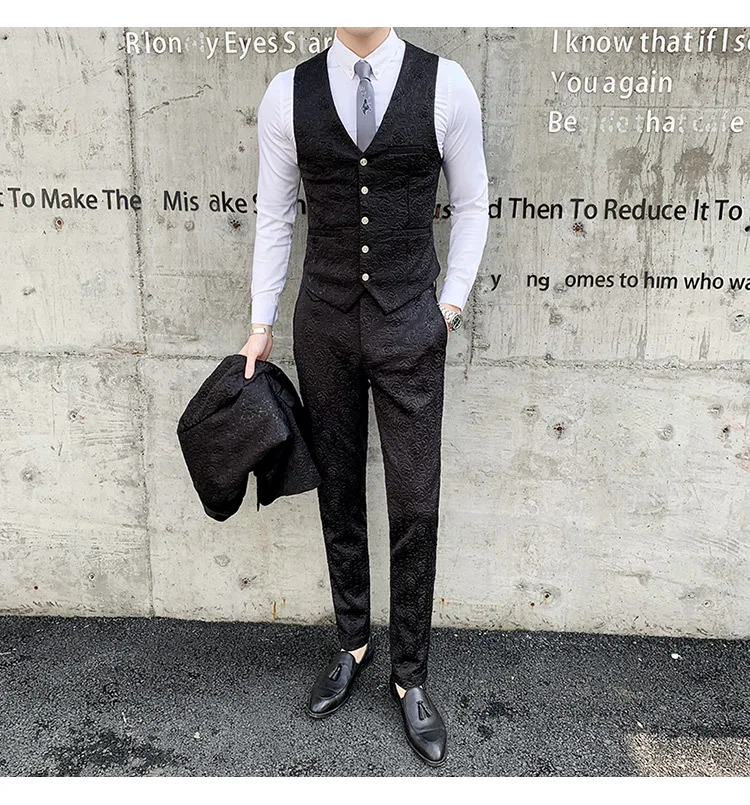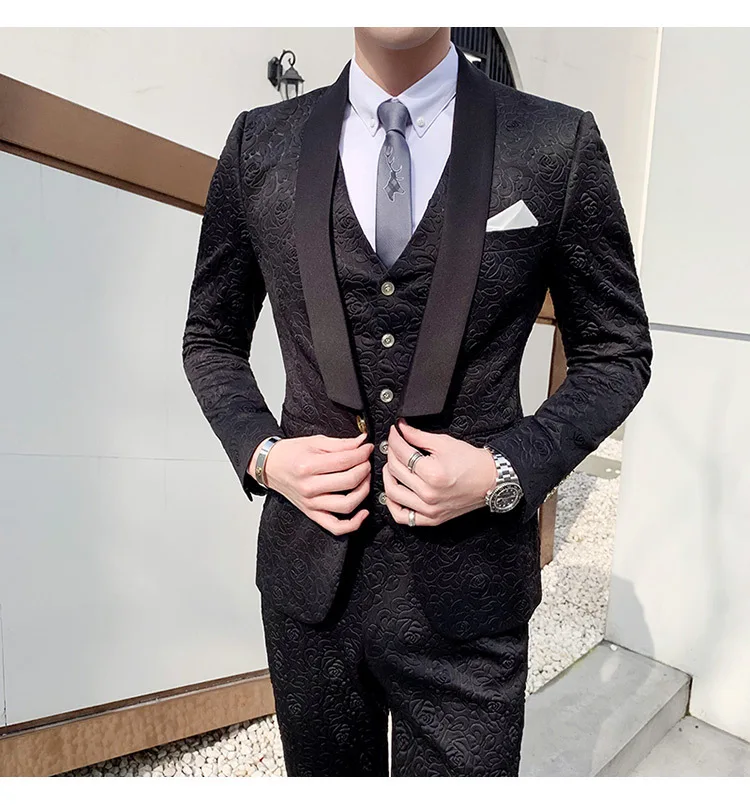 YUNCLOS Новое поступление мужские костюмы сплошной цвет 3 шт костюм комплект шаль