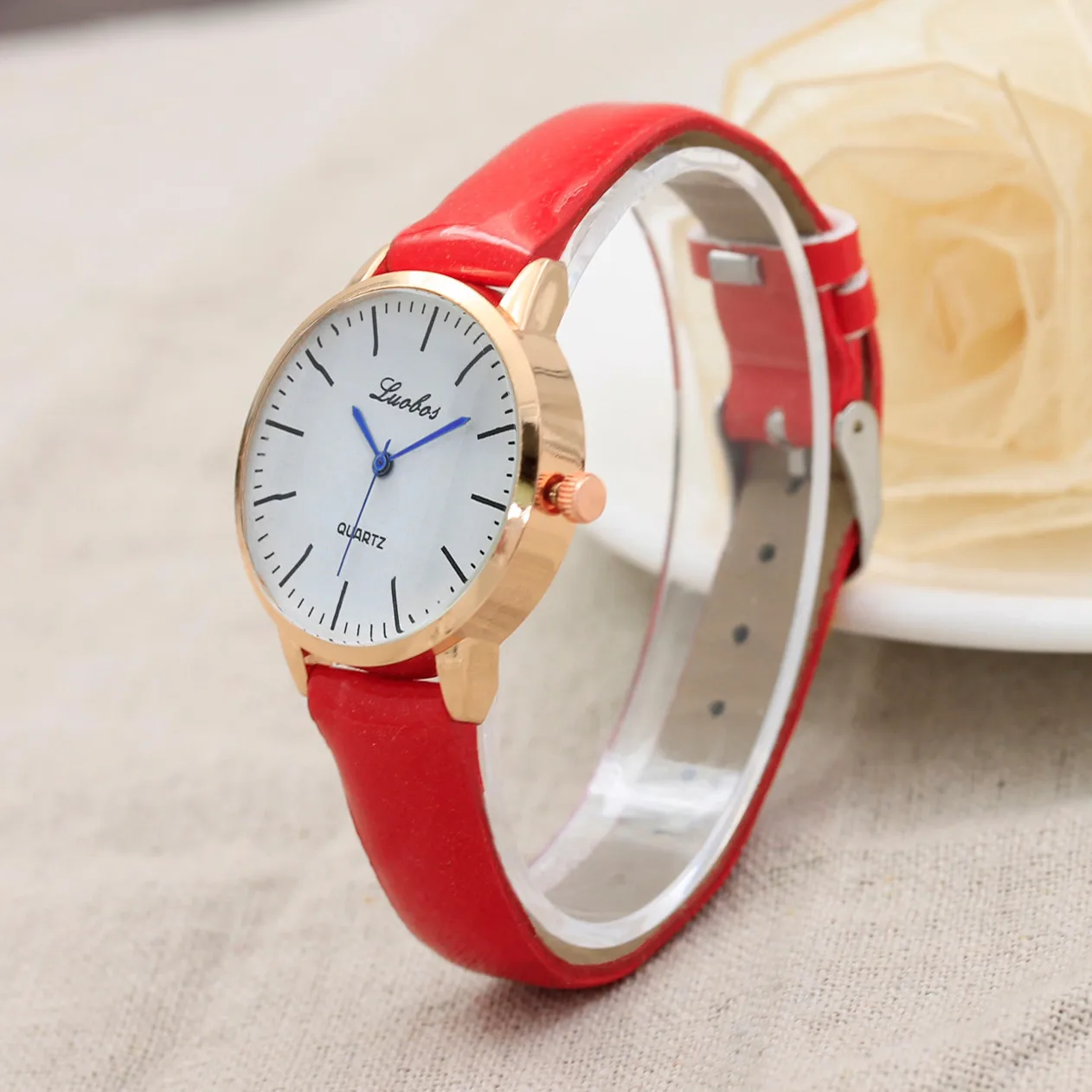 Женская мода цветной ремешок цифровой циферблат кожаный ремешок Кварцевые аналоговые наручные часы