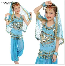 Восточные Танцевальные костюмы для девочек, египетские Детские костюмы для танца живота, SetEgyptian Bollywood, индийская одежда для танца живота, Индия, 3 цвета