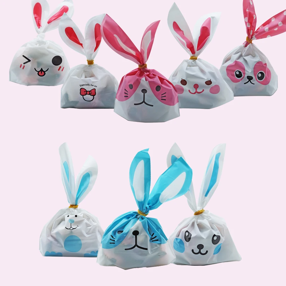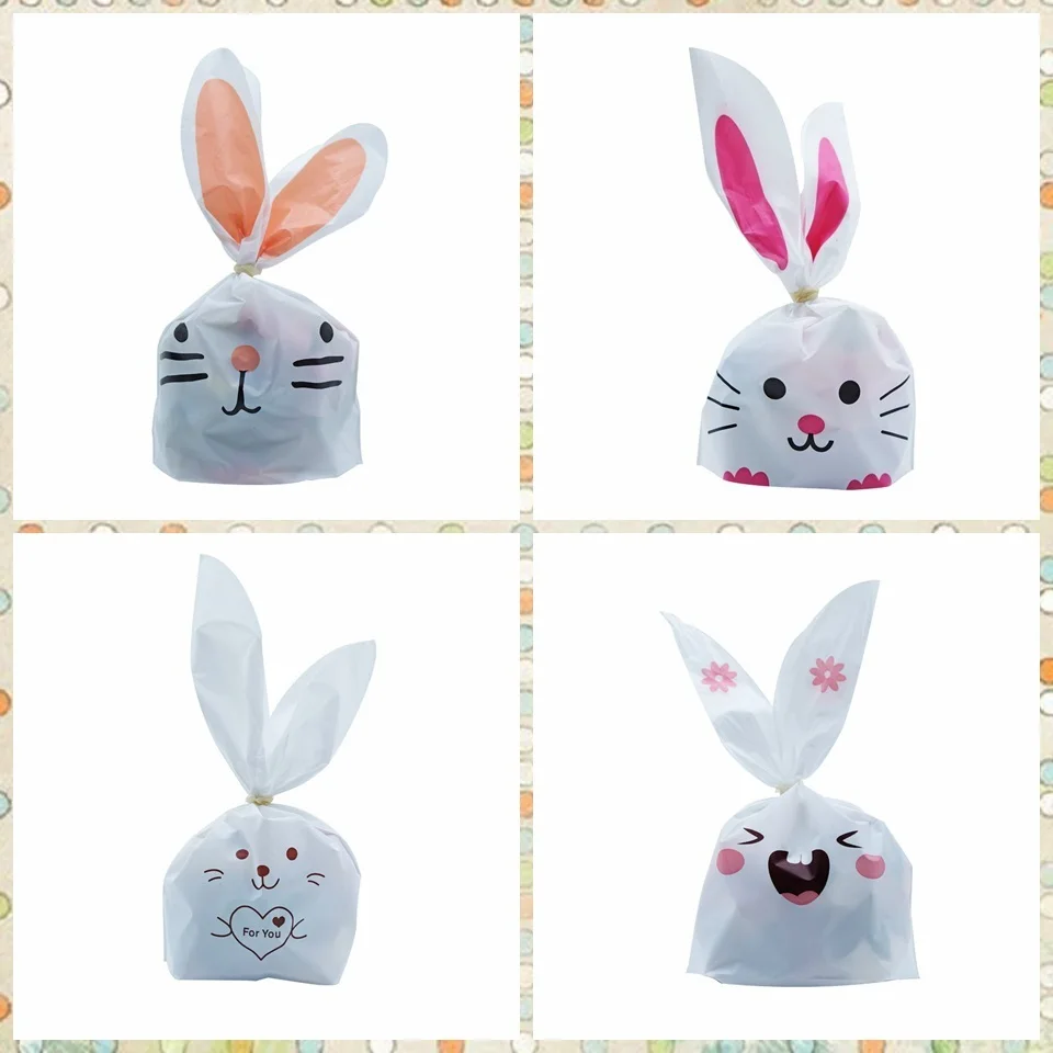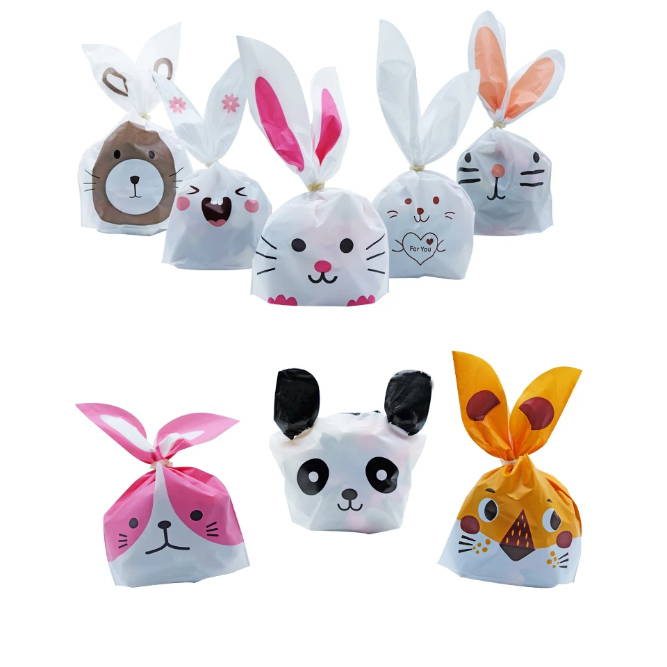 20 шт милый кролик печенья и пластиковый пакет для конфет мультфильм животных печенье закуски выпечка сумки конфеты/подарки упаковка свадебные вечерние сумки
