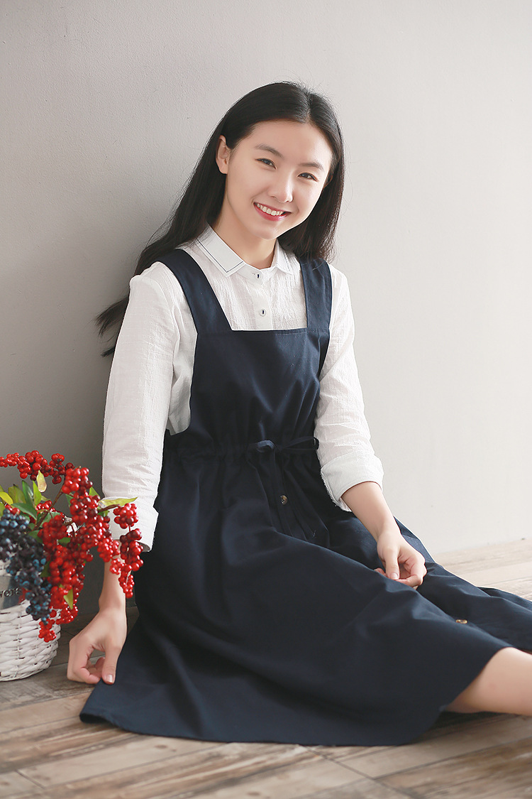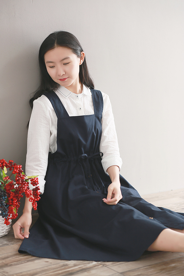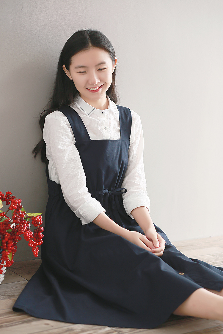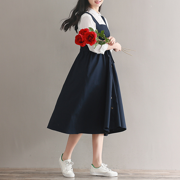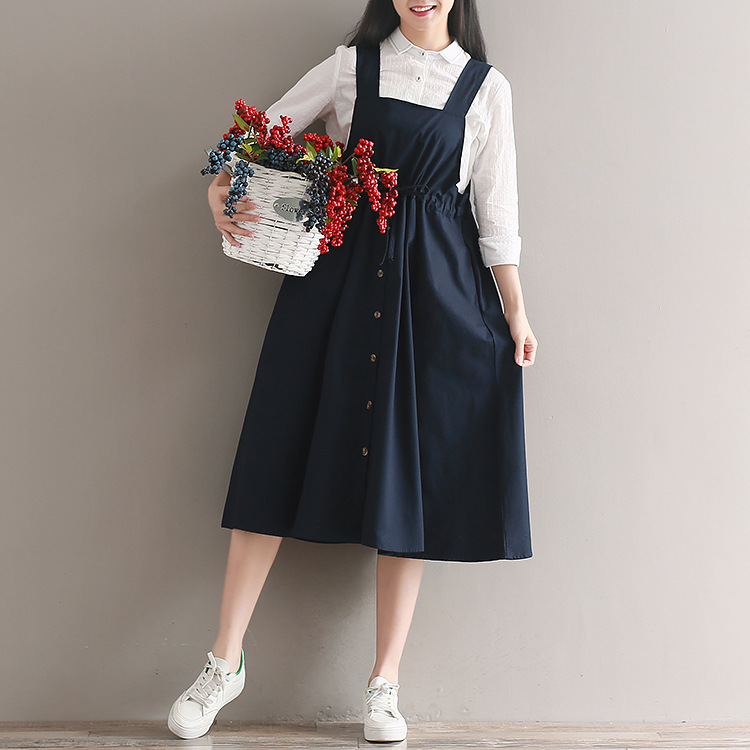 Японский Mori Girl Летний женский сарафан темно-синий подтяжки элегантное платье из хлопка и льна винтажные платья миди без рукавов