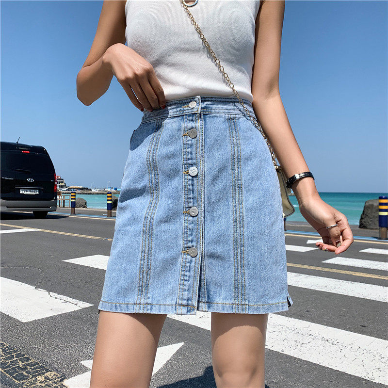 S-XL 2019 лето в Корейском стиле однобортный высокая талия джинсовые юбки Молния Линия женские джинсовые юбки