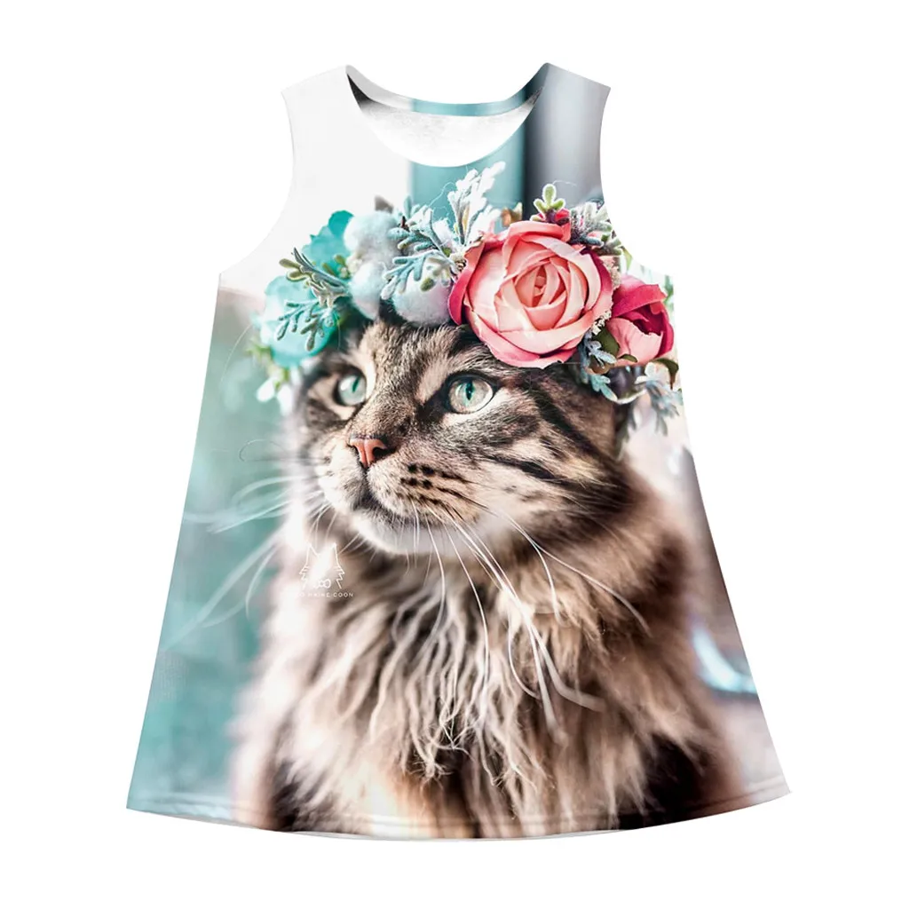 Летние платья без рукавов с объемным принтом для девочек-подростков; повседневная одежда