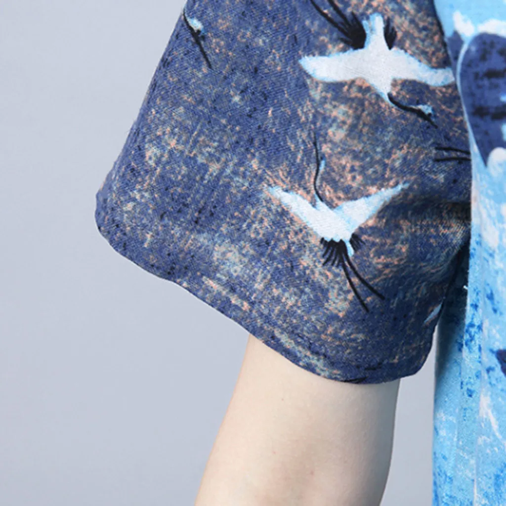 Женские летние винтажные повседневные свободные длинные платья с коротким рукавом и принтом
