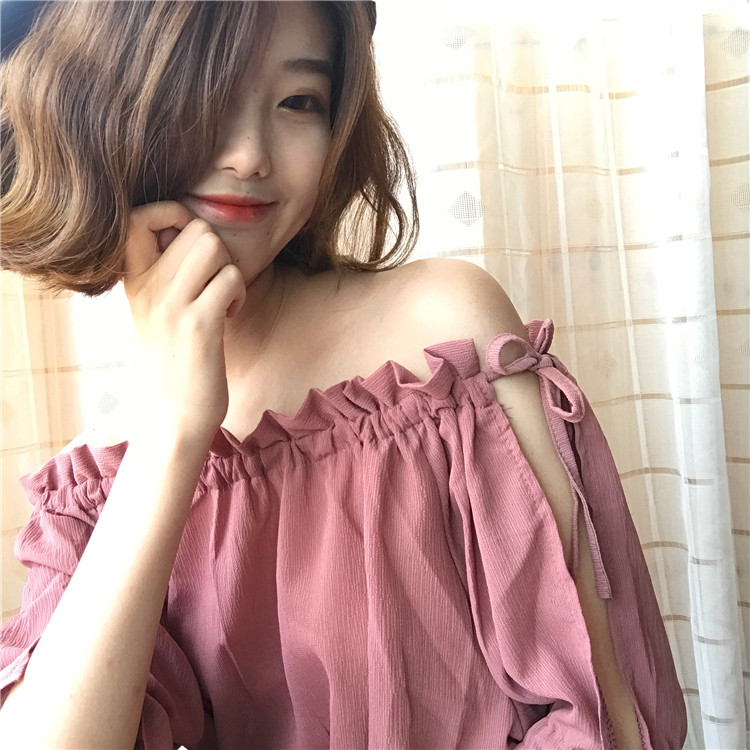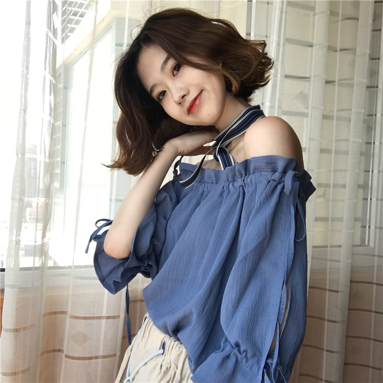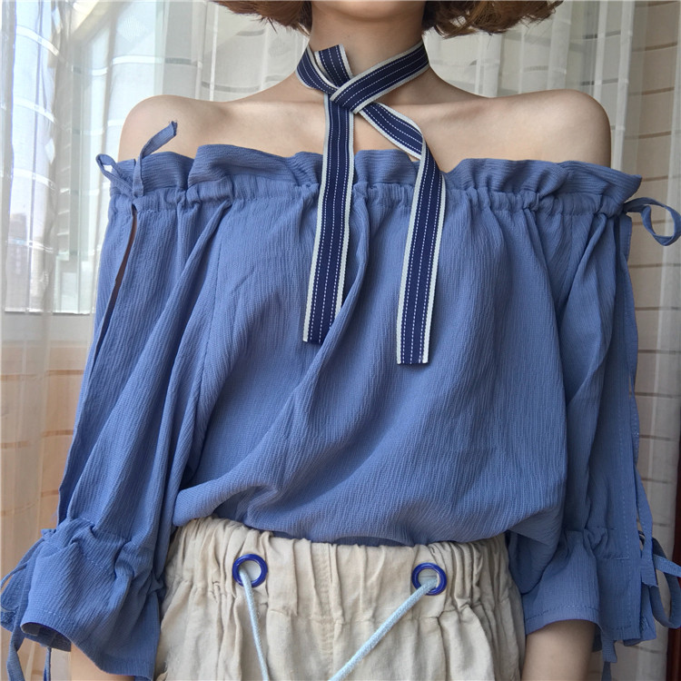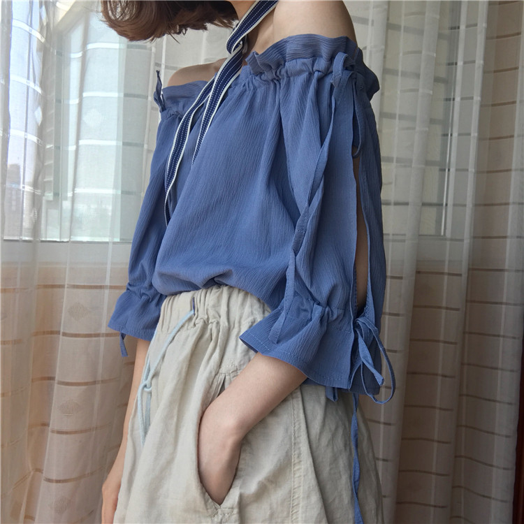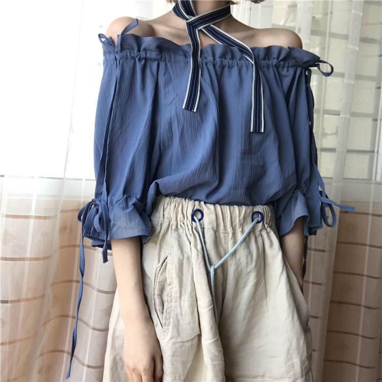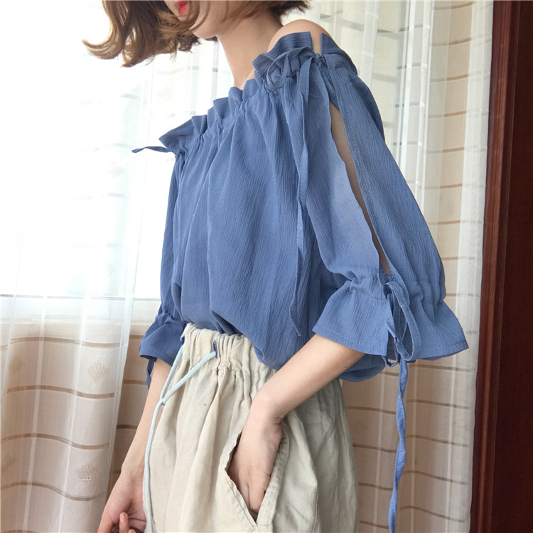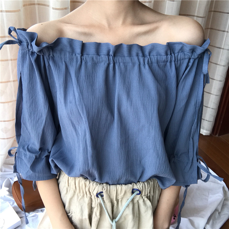 4 вида цветов 2019 в Корейском стиле летние одноцветные джинсовые платья-комбинезоны с открытыми плечами топы, шифоновые рубашки женские блузки с короткими рукавами для женщин
