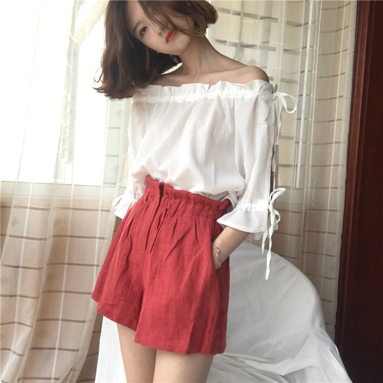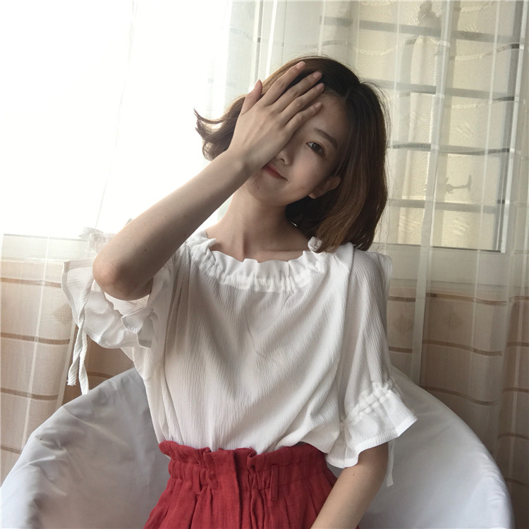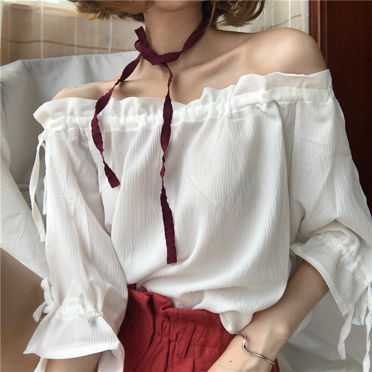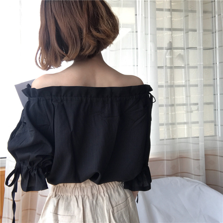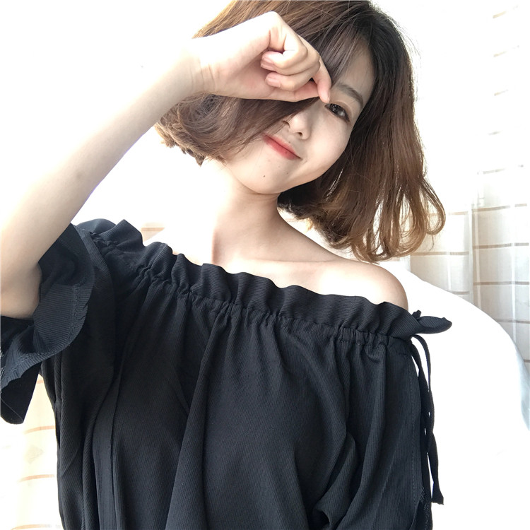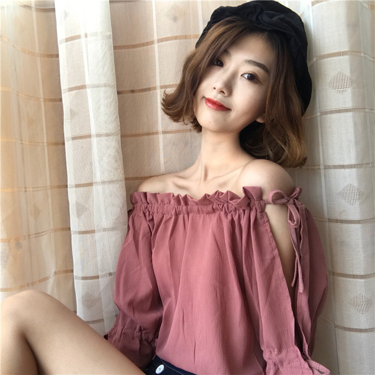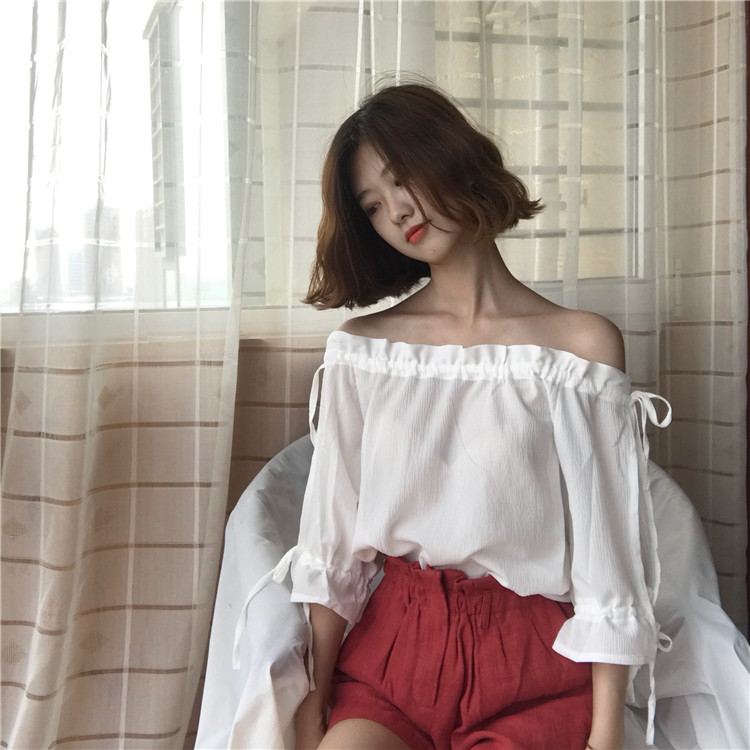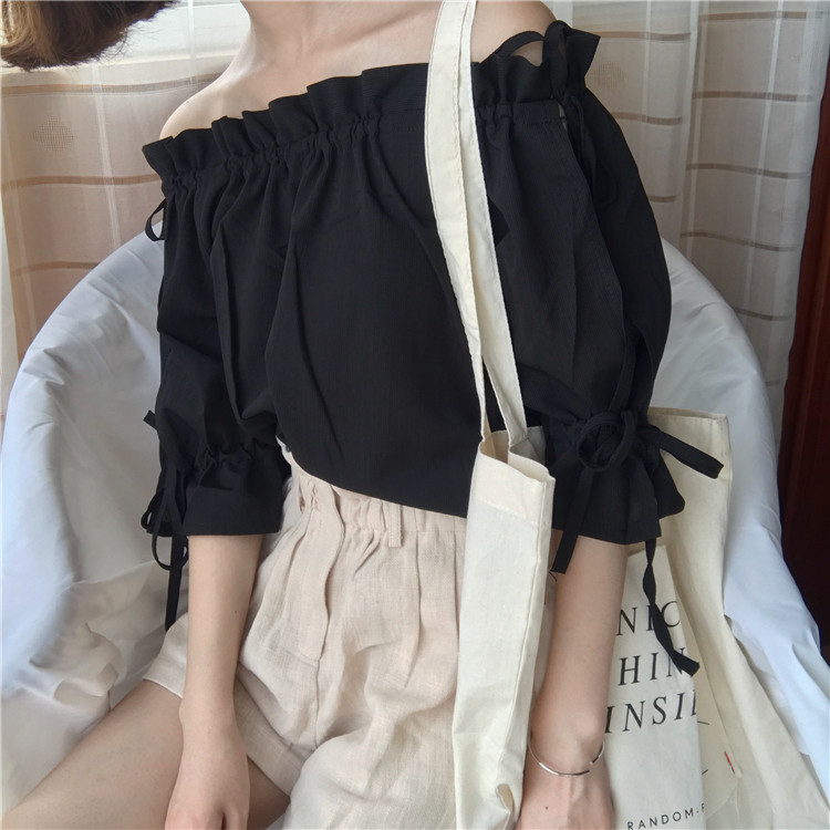 4 вида цветов 2019 в Корейском стиле летние одноцветные джинсовые платья-комбинезоны с открытыми плечами топы, шифоновые рубашки женские блузки с короткими рукавами для женщин