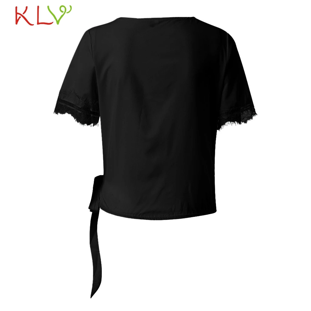 Женская однотонная Повседневная Блузка с коротким рукавом и кружевом для девочек