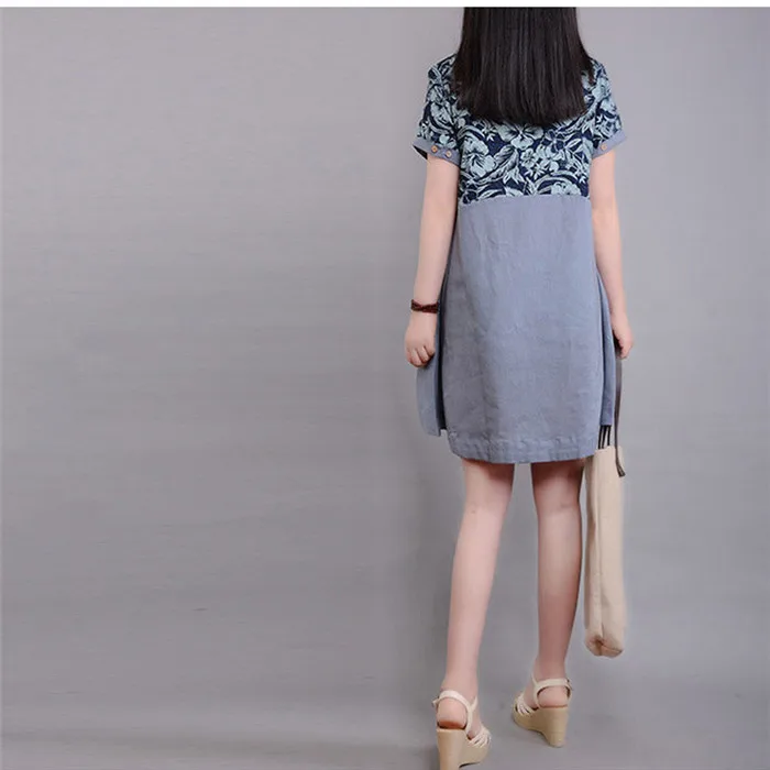 Платье большого размера, летнее платье с принтом, платье с коротким рукавом из хлопка и льна, TTT070, 2019