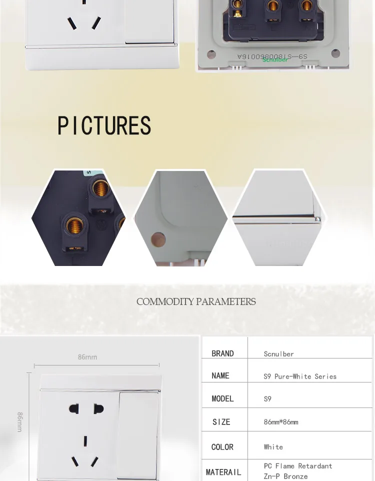 Белый 86 Стандартный Электрический 2 pin США и 3 pin AU розетка с 1 бандой 1 способ панель настенный переключатель