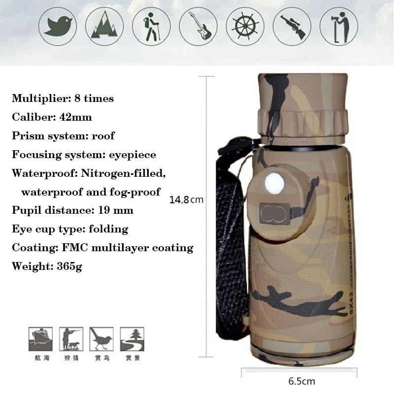 Камуфляж телескоп Военный стандарт водонепроницаемый Antifogging наблюдения Луны 8X42 телескоп в диапазоне на открытом воздухе оборудование