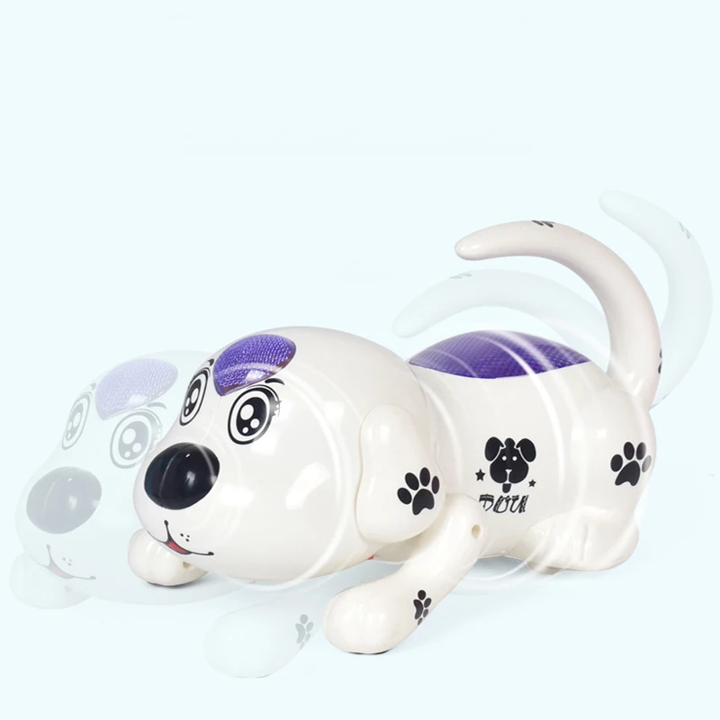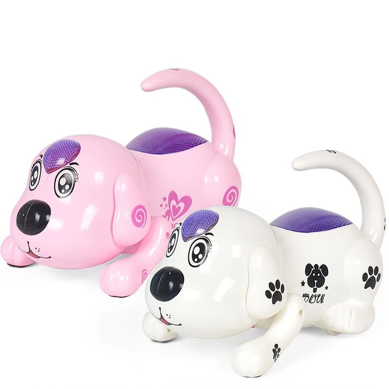 Особенности: пульт дистанционного управления с откидной крышкой для собаки, ползает с пением и музыкальными огнями, Веселый вагтейл Развитие способностей: визуальное развитие, слуховое развитие, координацию рук и глаз, работа и отдых, взаимодействие родителей и детей Материал игрушки: пластик Размер: 13х22х13 см Аккумулятор: три батарейки AA (не входят в комплект) Пульт дистанционного управления: две батарейки AA (не входят в комплект) Цвет стиля: белый и розовый