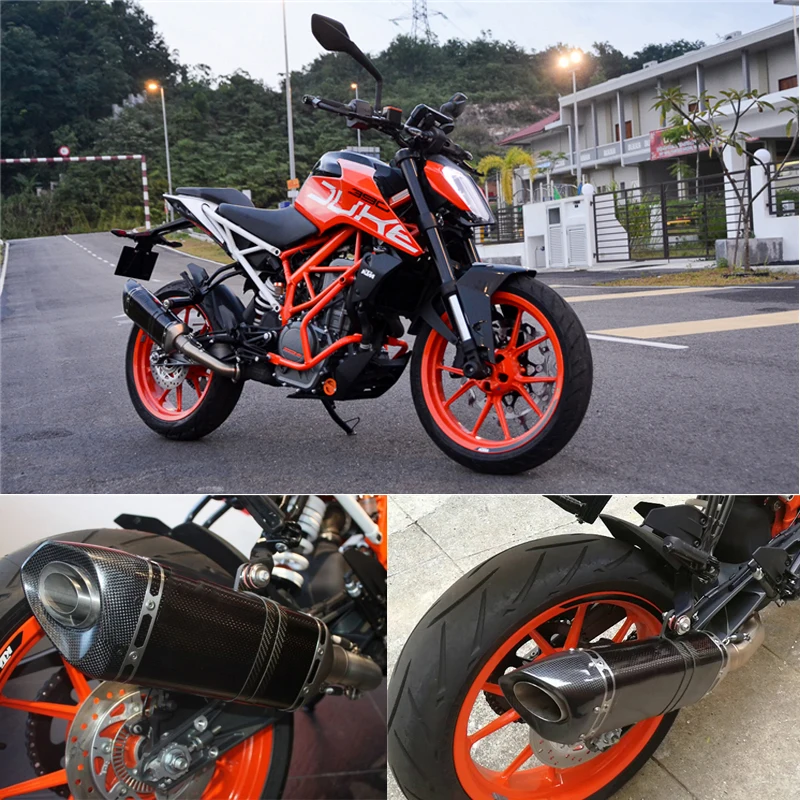 Мотоцикл Модифицированная выхлопная система из нержавеющей стали средняя звеньевая труба + 51 мм Хвостовая труба из углеродного волокна для Duke 125 250 390 2017-2020