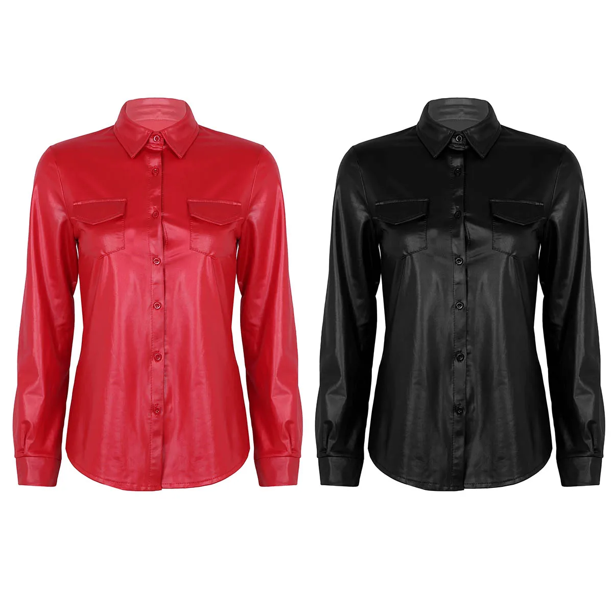 Женская Блестящая металлическая блузка из искусственной кожи, легкая и гладкая ткань.