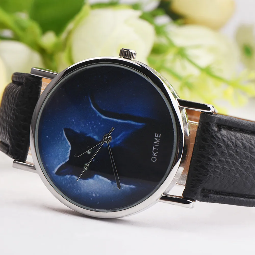 Женские часы таинственный черный Кот искусственная кожа аналоговые кварцевые часы кожаный ремешок из нержавеющей стали Циферблат повседневные наручные часы 2019 Новинка