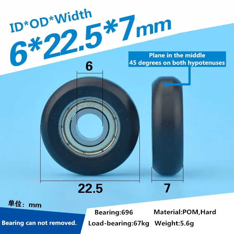[Размер ролика]:ID = 6 мм, диаметр = 22,5 мм, Ширина = 7 мм