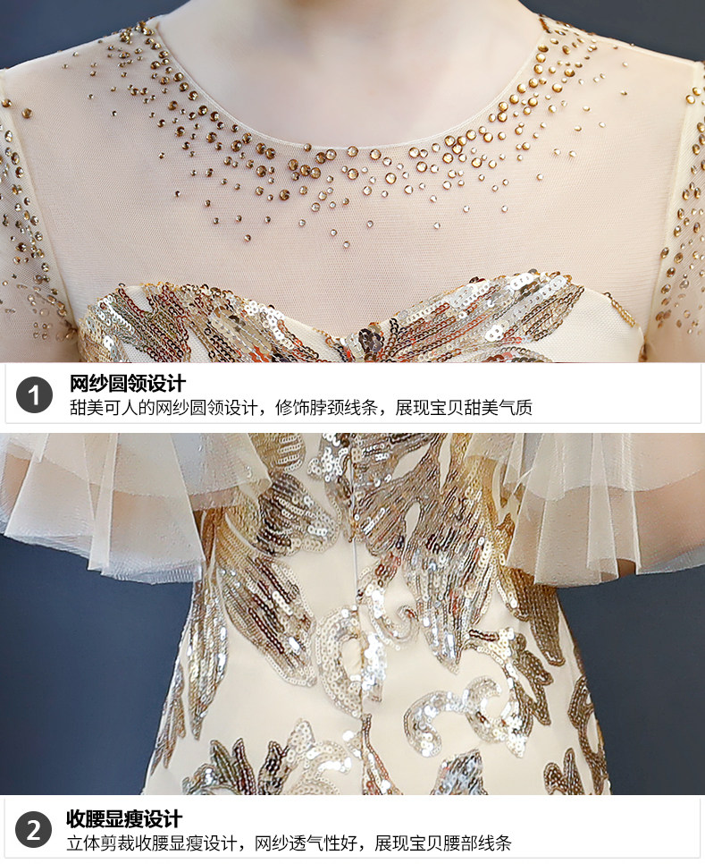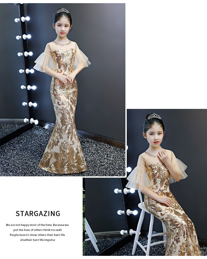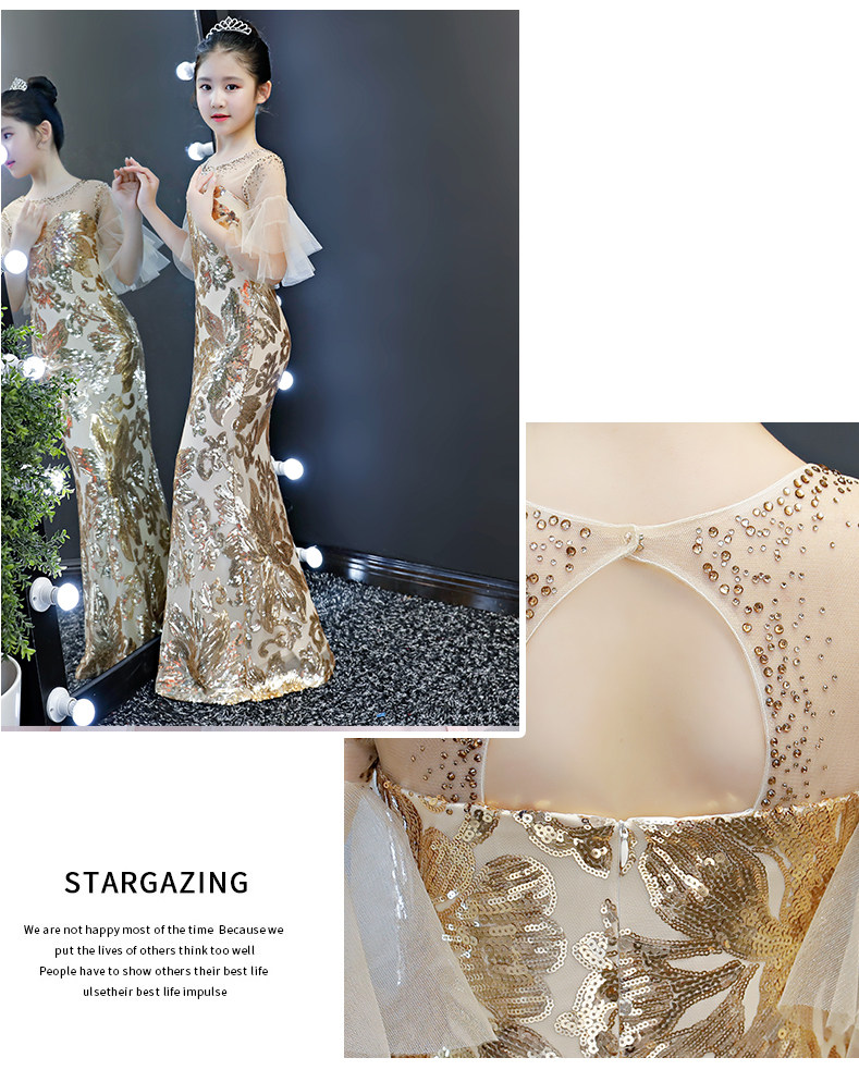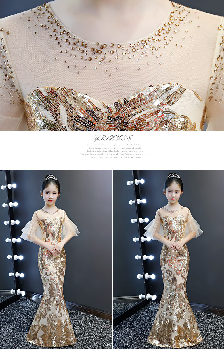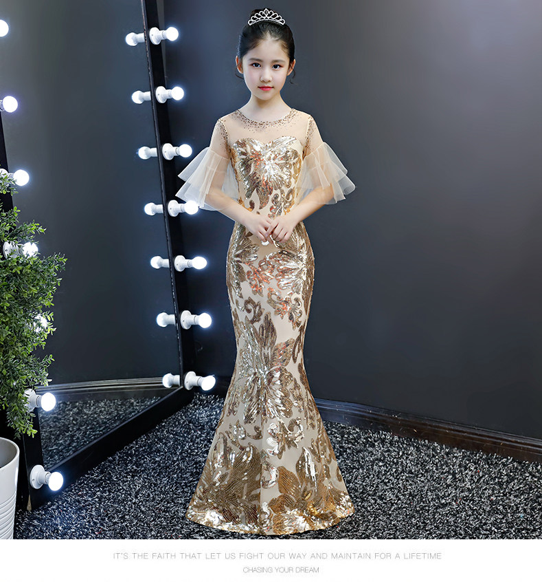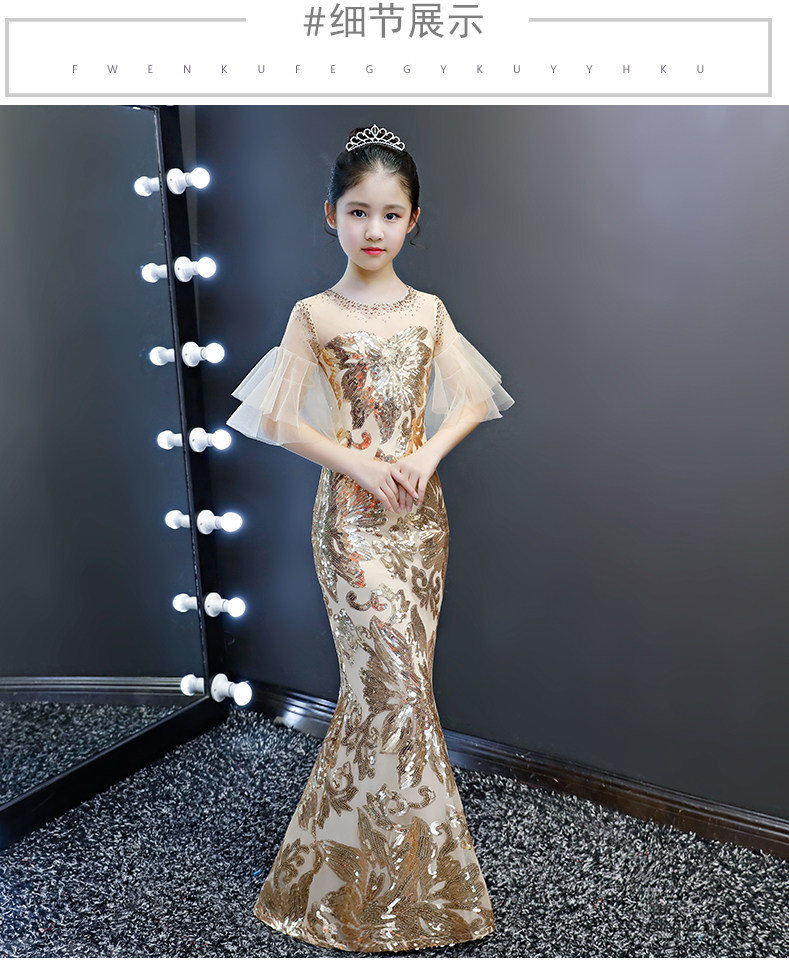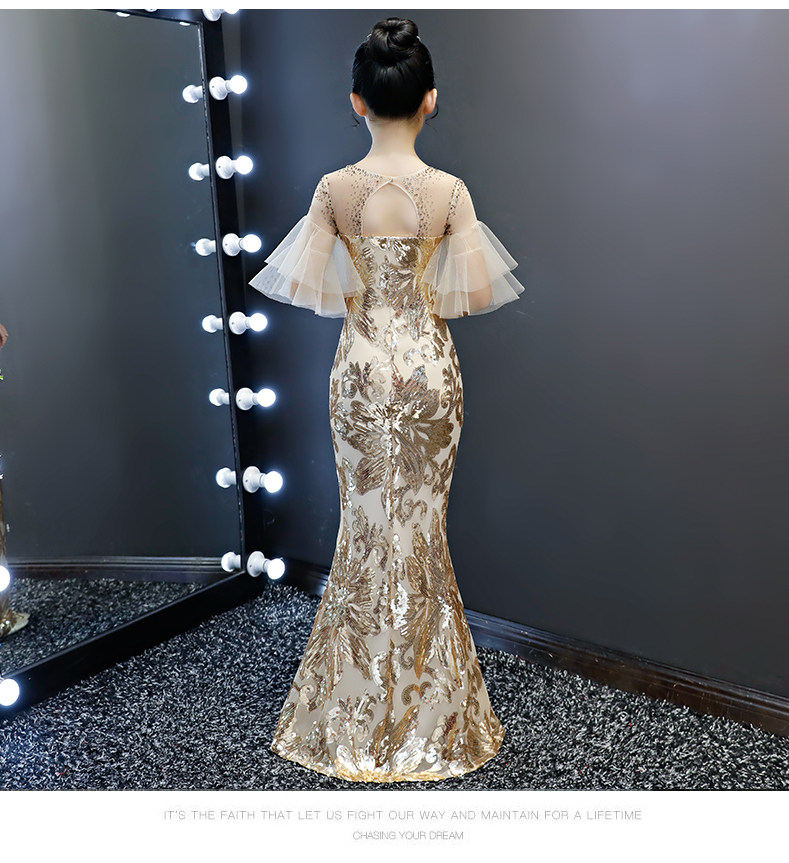 Детское роскошное свадебное платье; Детское вечернее платье с золотыми блестками; Элегантные вечерние платья Русалочки с расклешенными рукавами в китайском стиле