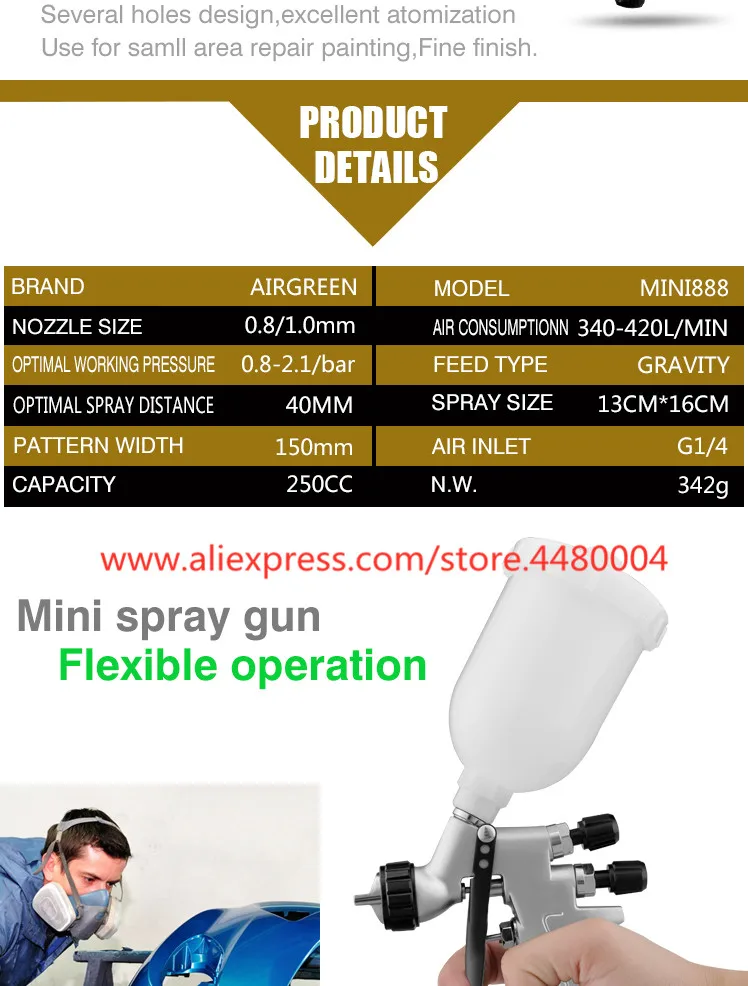 Бесплатная доставка Мини Ремонт пистолеты распылители Шри Pro 1,0/1,2 мм самотеком HVLP Краски опрыскиватель с 250 мл чашка