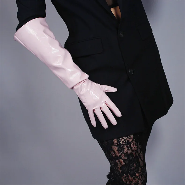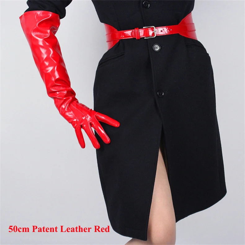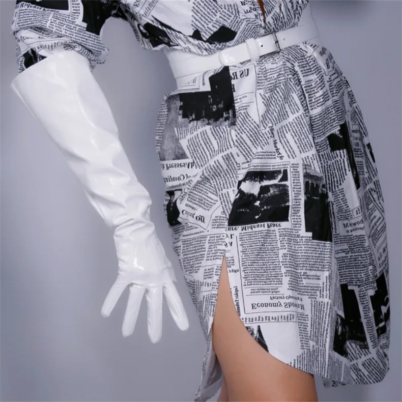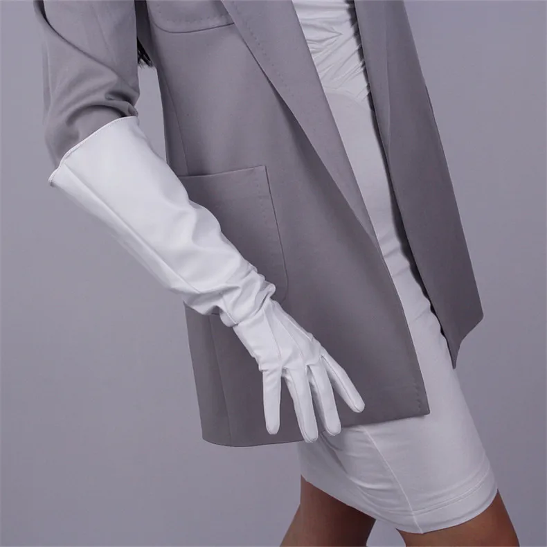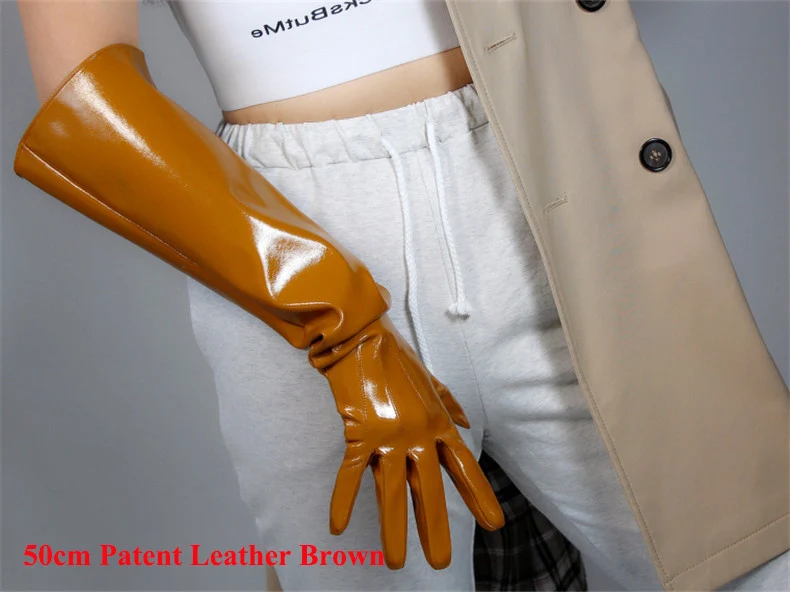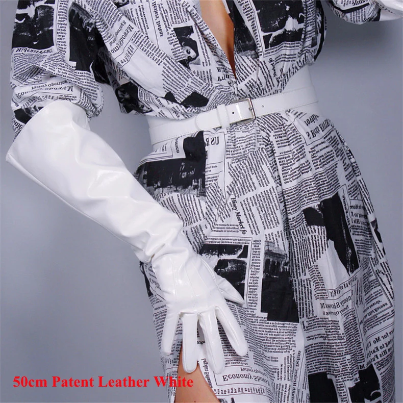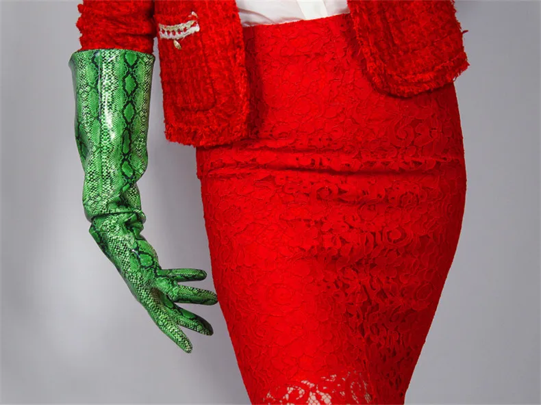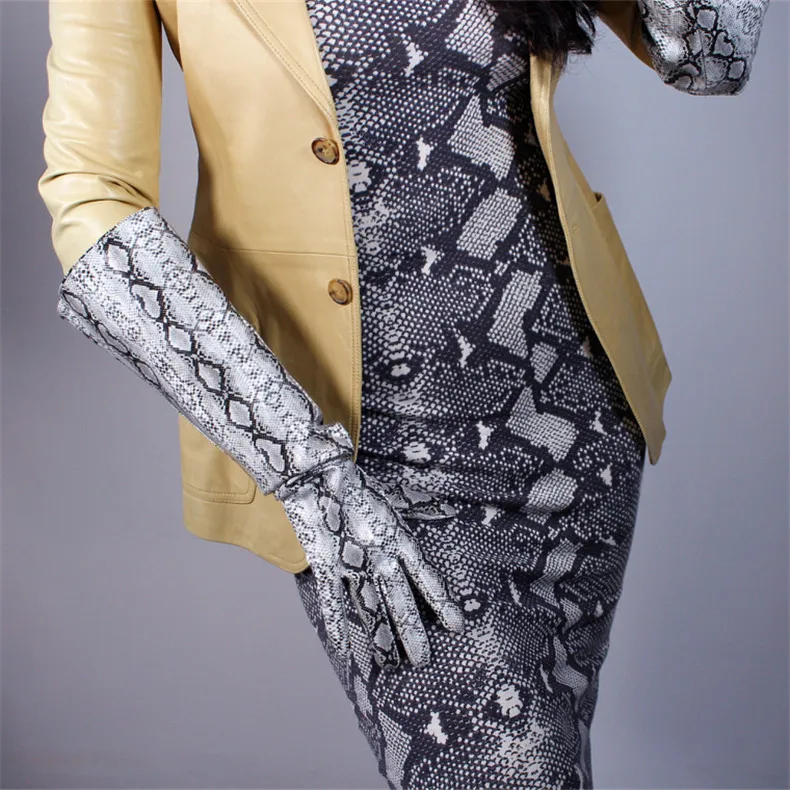 50 см длинные перчатки из лакированной кожи с большими манжетами и рукавами-фонариками, кожаные перчатки с животным узором, серебристые женские WPU78-50W с рисунком змеи