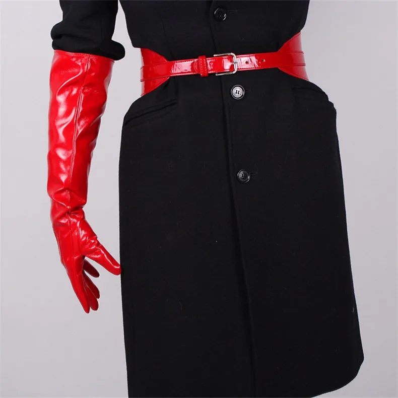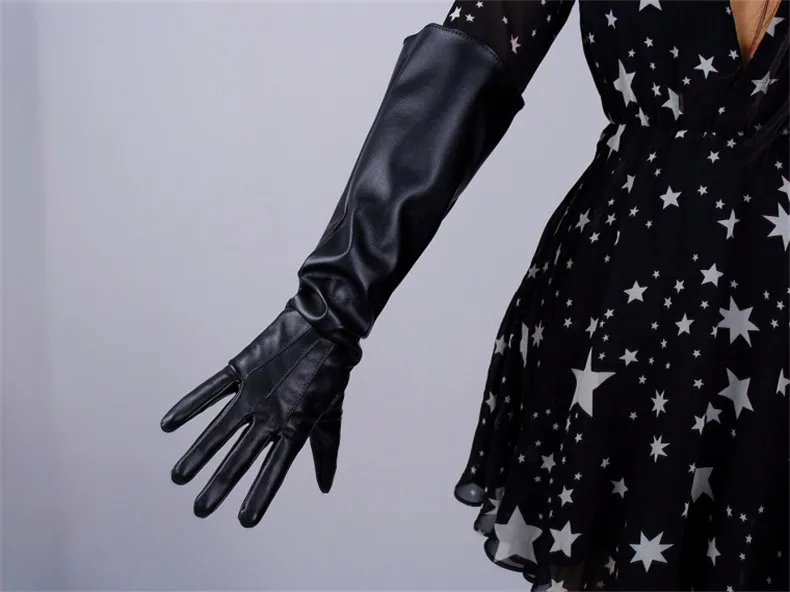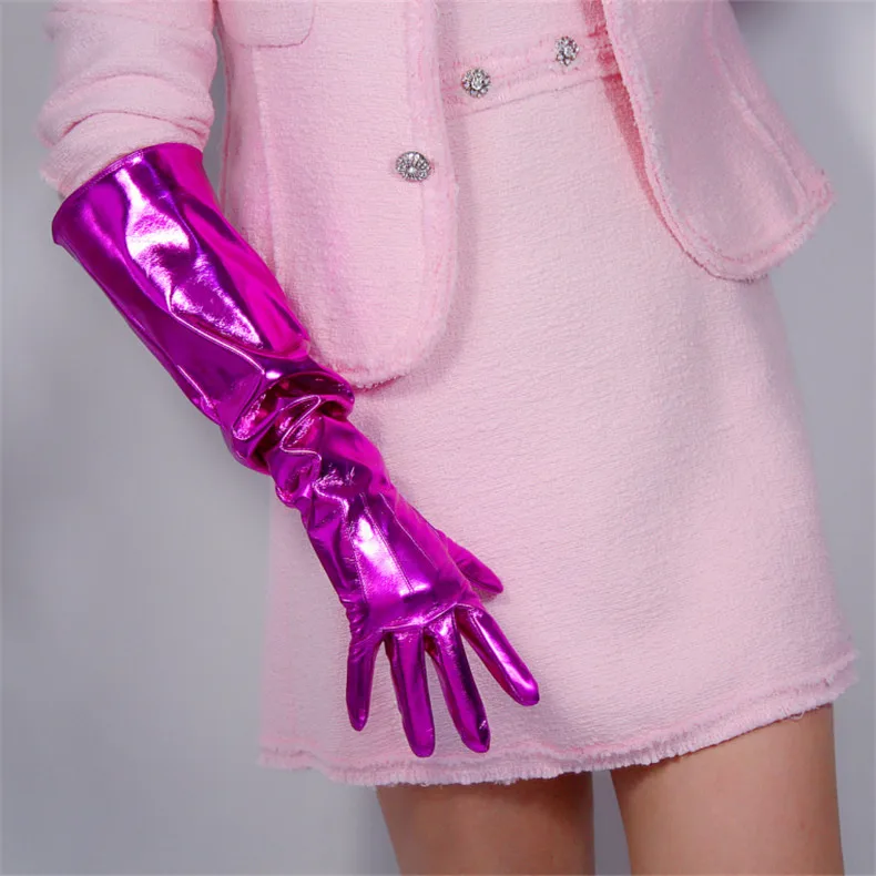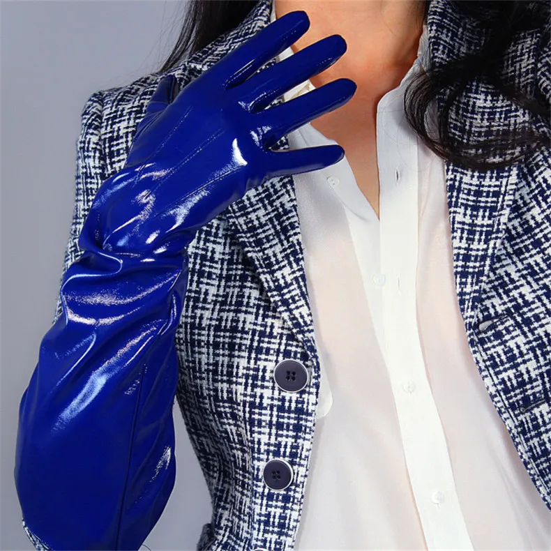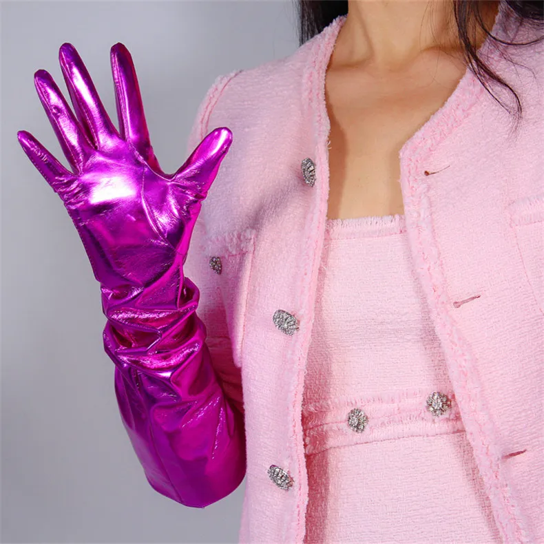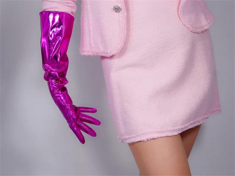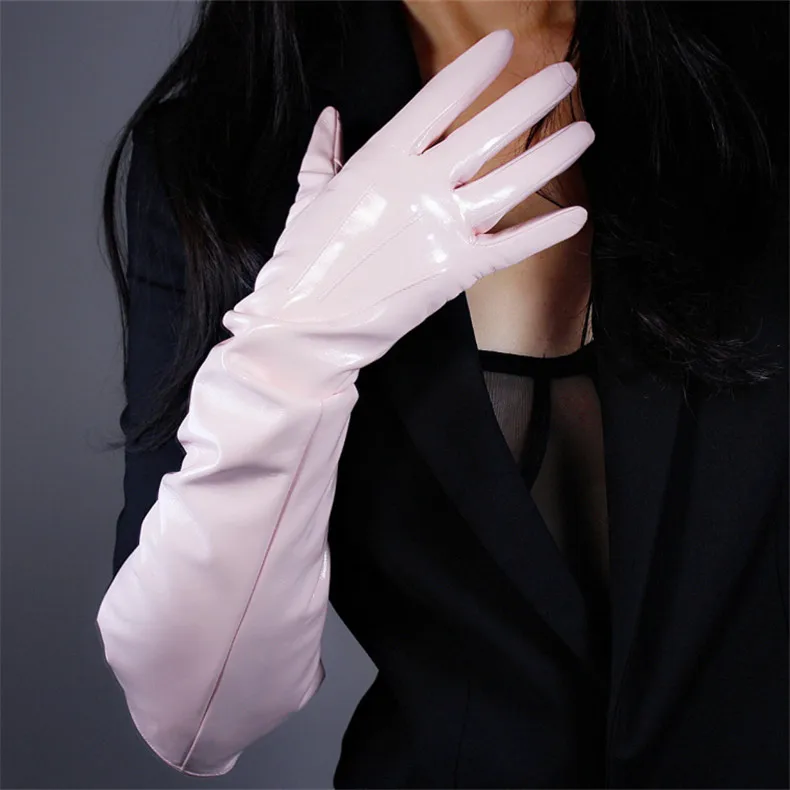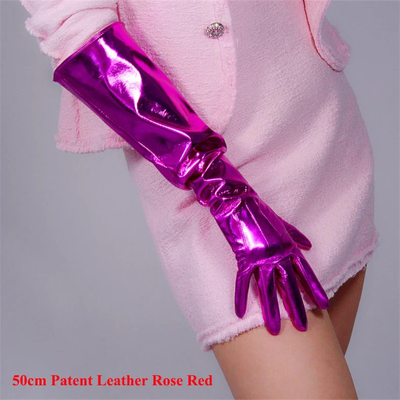 50 см длинные перчатки из лакированной кожи с большими манжетами и рукавами-фонариками, кожаные перчатки с животным узором, серебристые женские WPU78-50W с рисунком змеи