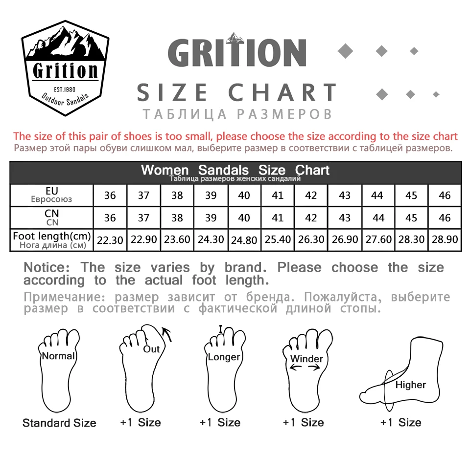 Размер этой пары сандалий меньше, пожалуйста, выберите размер, который соответствует длине вашей стопы в соответствии с размером таблицы.