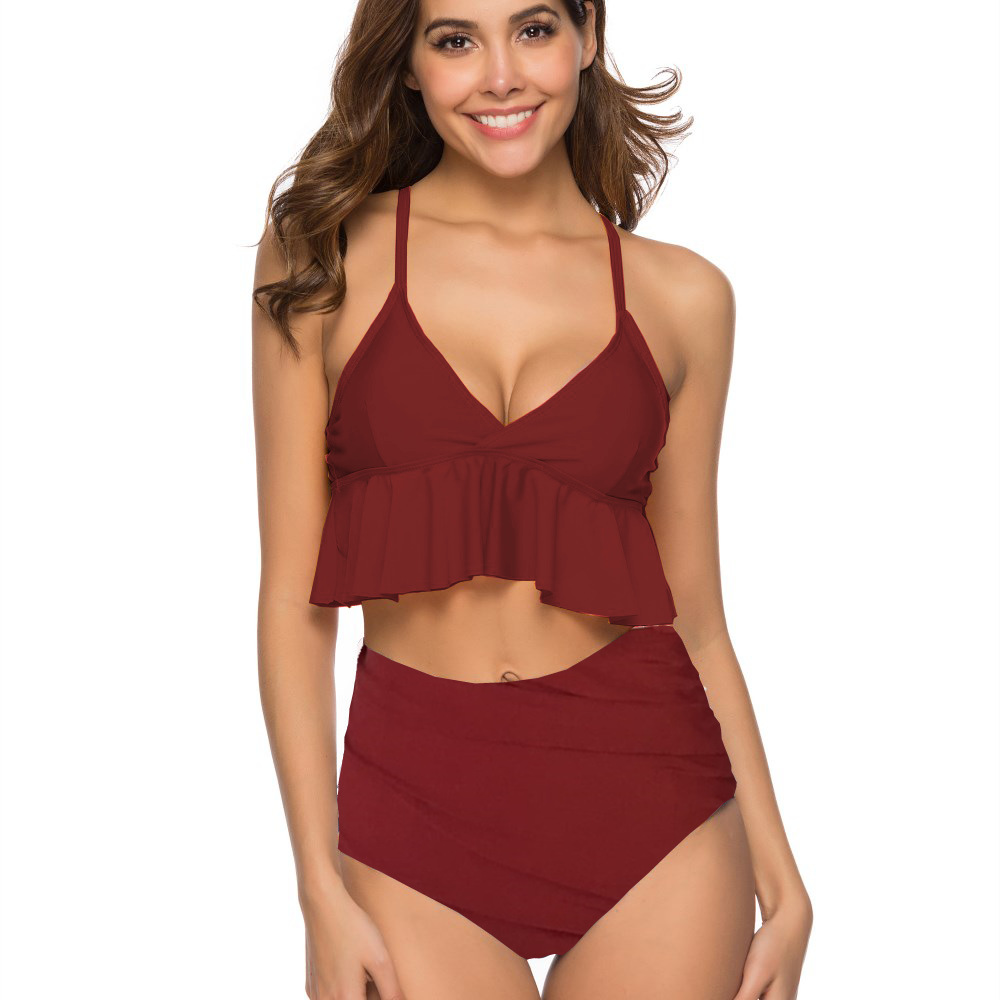 Женский комплект бикини из двух предметов, сексуальные купальные костюмы, быстросохнущие купальники, мягкий бюстгальтер, купальные костюмы, цветочный принт, оборки, высокая талия, купальники