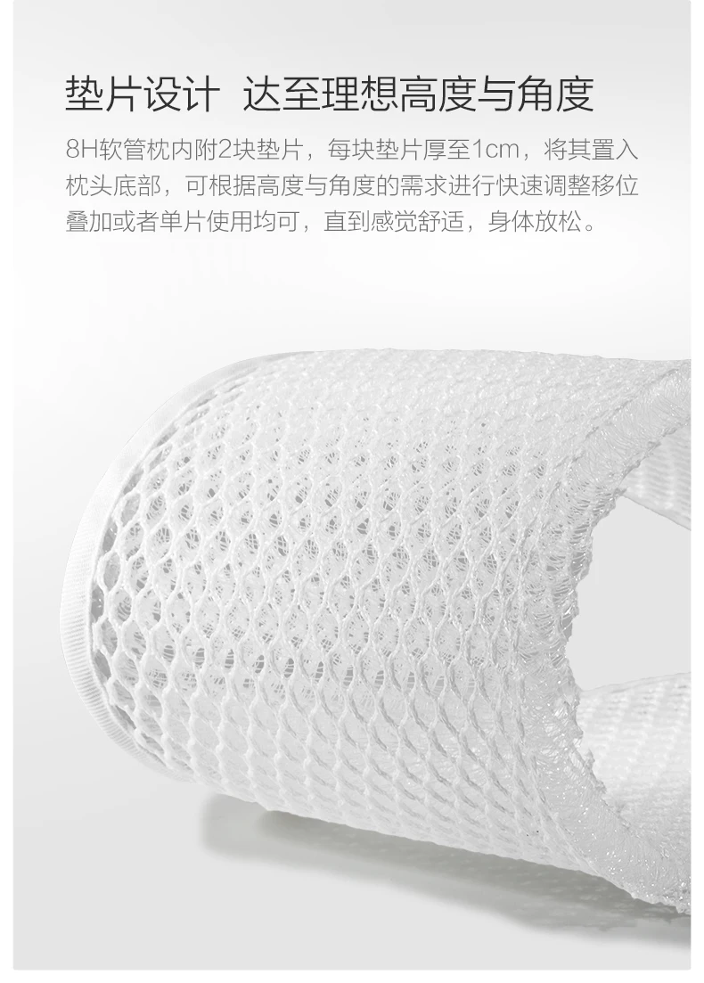 В подушке для шланга 8H есть 2 прокладки. Каждая прокладка толщиной 1 см. Его можно разместить на нижней части подушки. Его можно регулировать в соответствии с высотой и углом. Его можно регулировать путем переключения или укладки, пока он не будет чувствовать себя комфортно. Расслабьте свое тело.