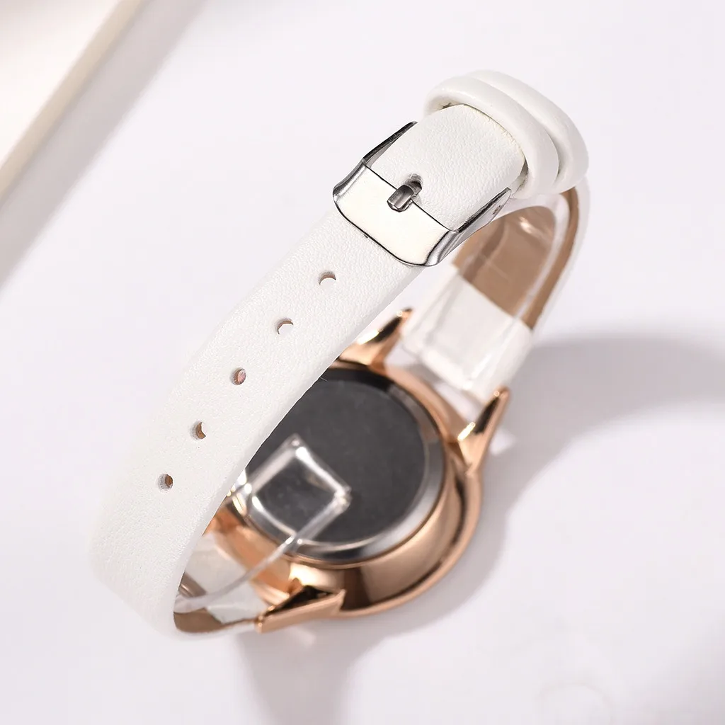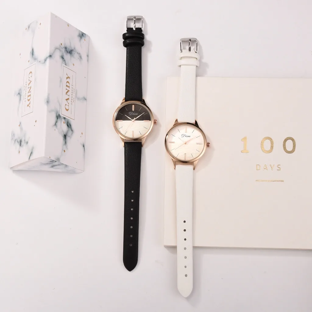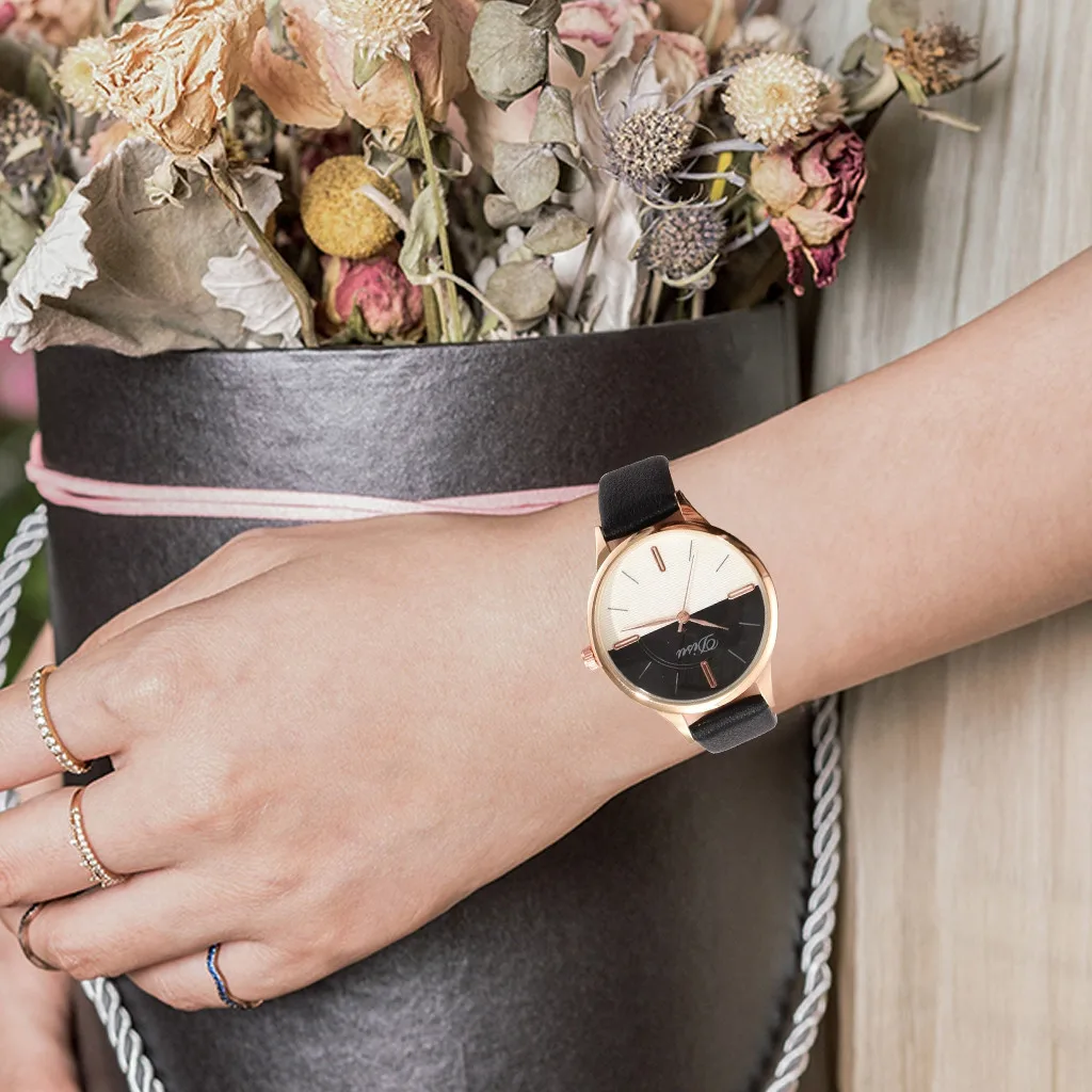 Роскошные модные женские простые часы с кожаным ремешком, двухцветные кварцевые часы