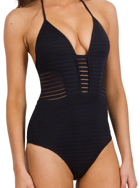 Женское Сетчатое боди с длинным рукавом ArtSu черный облегающий пляжный комбинезон