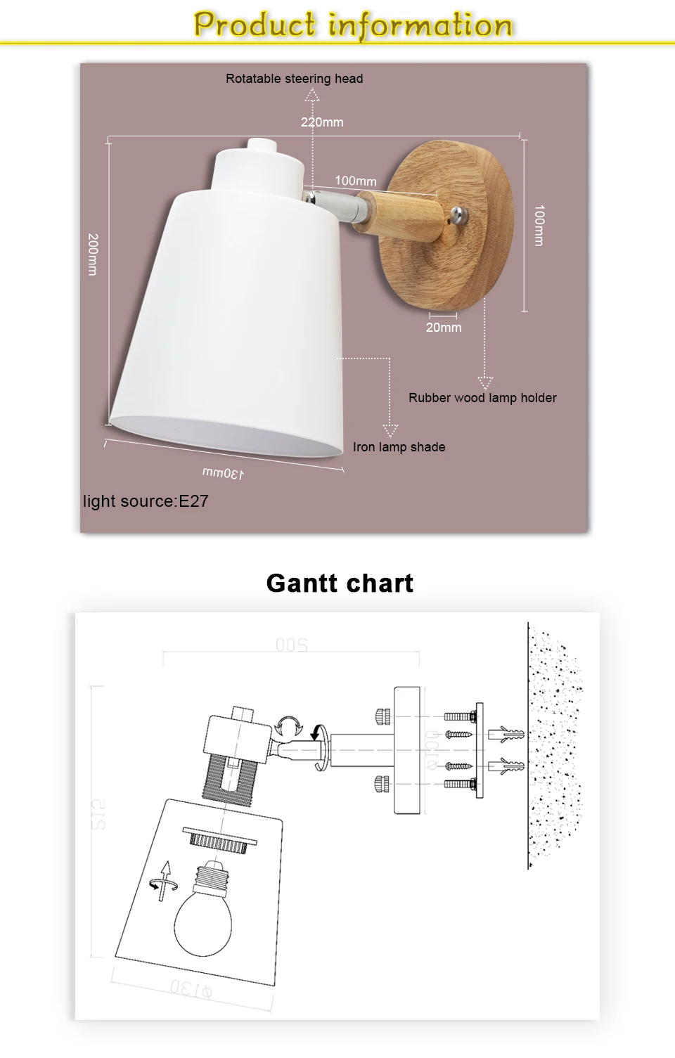 Настенный светильник E27 гибкий настенный современный квадратный железный с