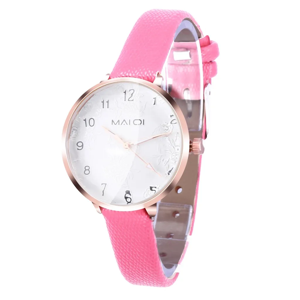 Роскошные часы Womern, известный бренд, модные, 3D тисненый циферблат, Выпуклое стекло, простой темперамент, кожаный ремень, женские часы, femme #03