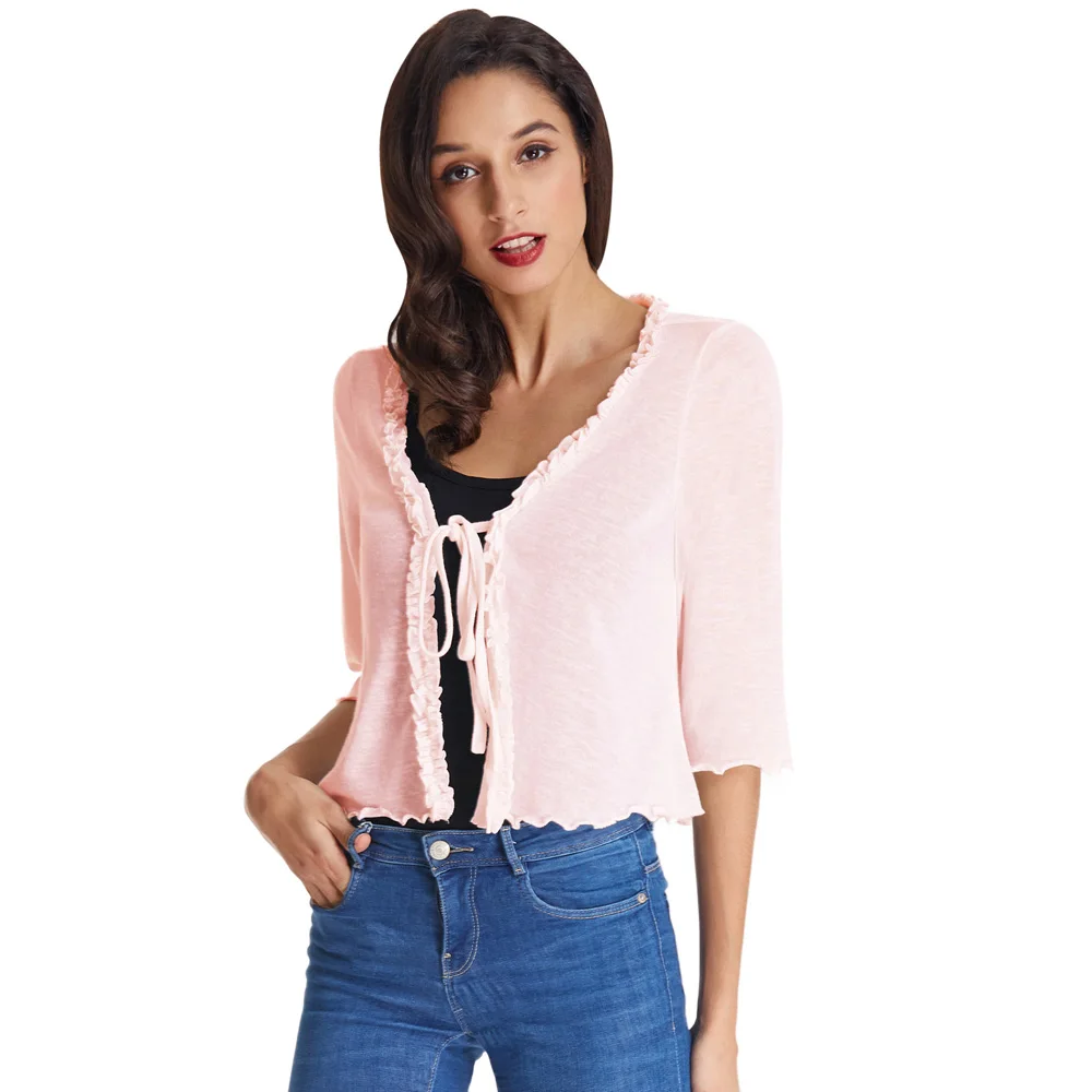 Характеристики Товара | 1) рукава длиной три четверти 2) Дизайн с плиссировкой 3) открытая передняя часть с фиксированным галстуком 4) полупрозрачная конструкция 5) одежда немного эластичная |