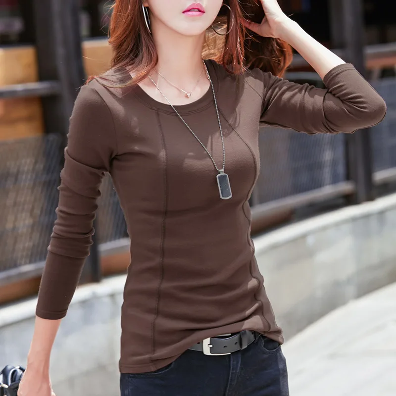 Женская футболка с длинным рукавом, однотонная хлопковая футболка на осень, новинка 2019