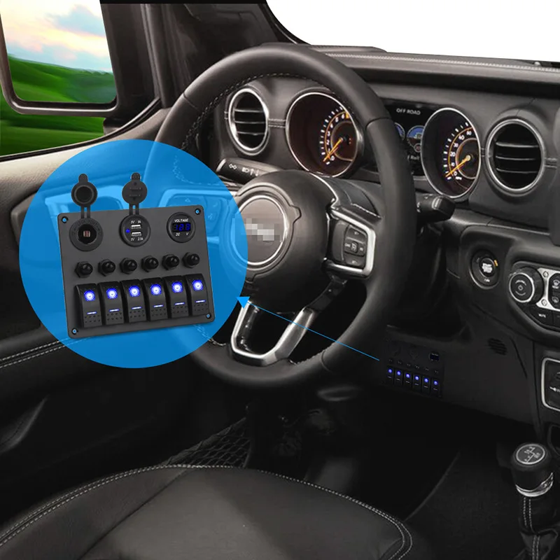 6 банд Водонепроницаемый светодиодный кулисный переключатель панель для автомобиля Авто лодки SUV RV автоматические выключатели вольтметр автомобильные переключатели автомобильное двойное зарядное устройство USB