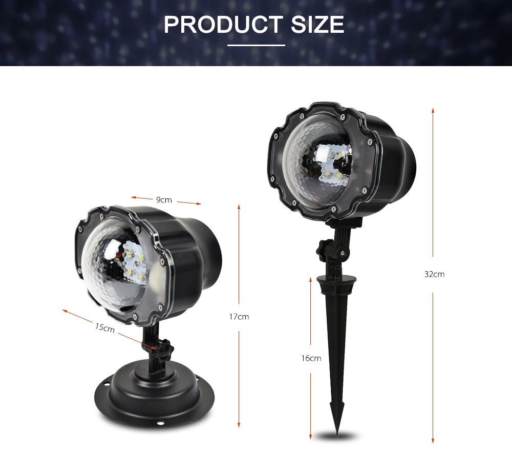 Этот прожектор с эффектом снегопада светильник широко используется в Рождество, День Святого Валентина, свадебные, вечерние и праздничные украшения. Реалистичный светодиодный светильник снежинки очень романтичный, который удивит ваших друзей, ближнего, особенно ваших детей.