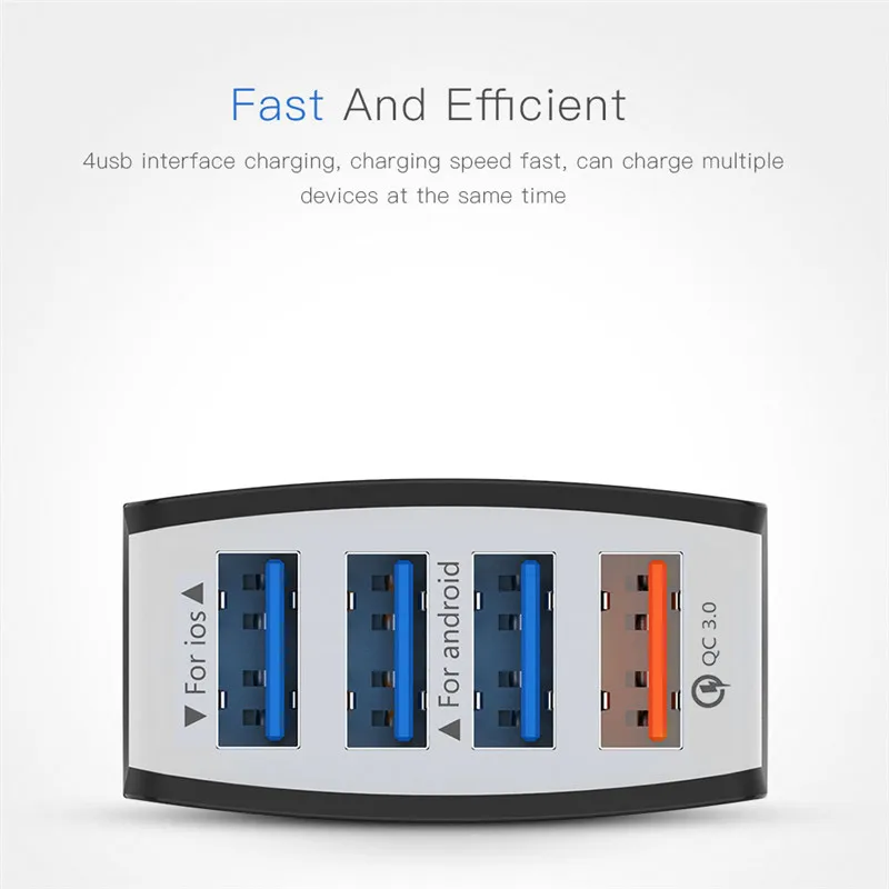 Быстрый QC 3 0 адаптер для зарядки телефона 4 порта USB Автомобильное зарядное