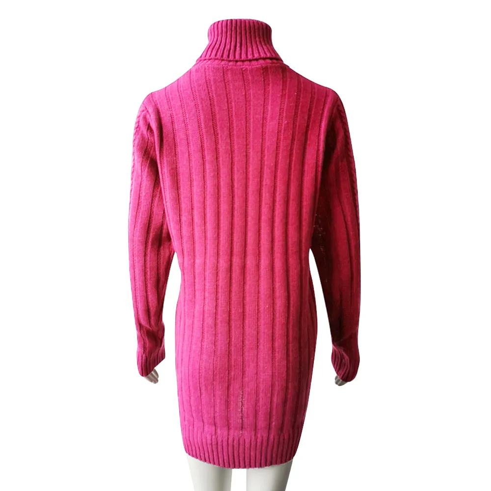 Женский зимний теплый однотонный вязаный свитер-водолазка с длинным рукавом мини-платье