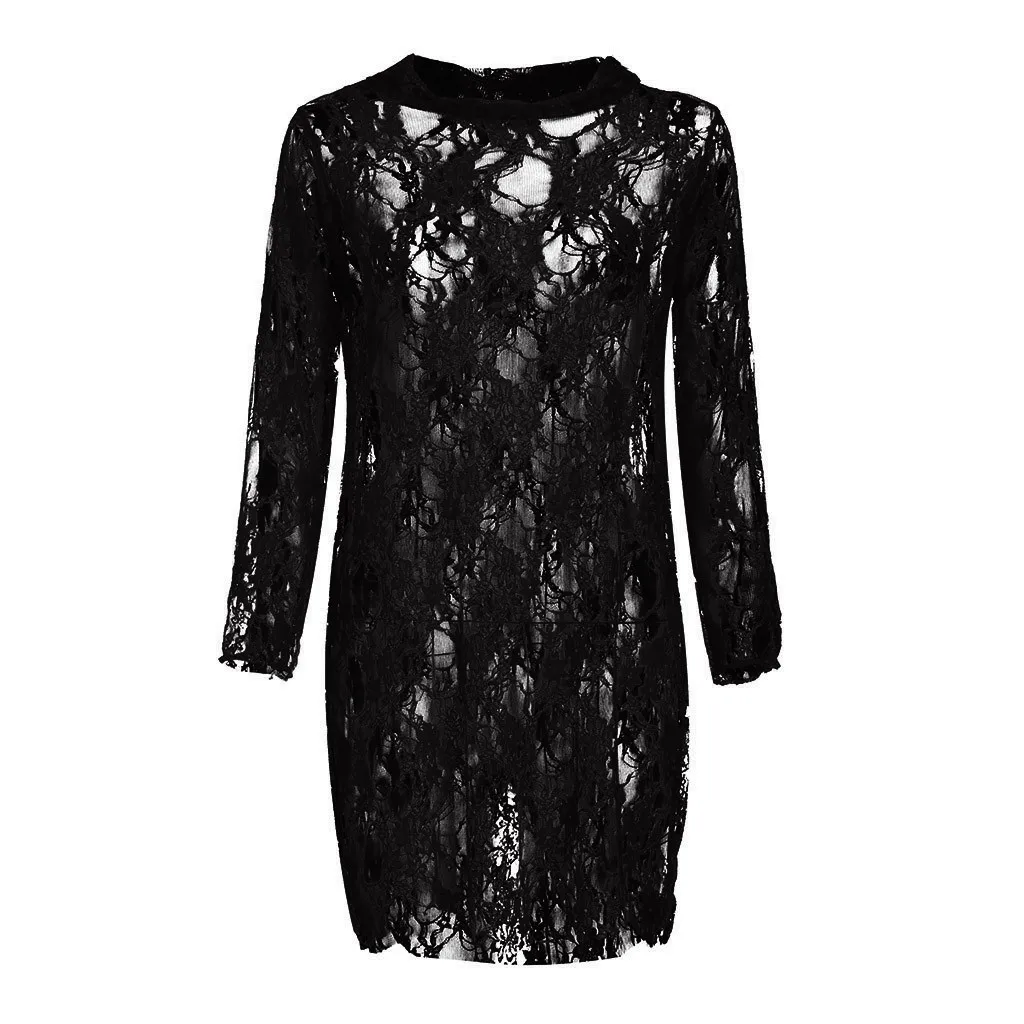 Сексуальное женское кружевное платье Babydoll, Мини Ночная рубашка с длинным рукавом