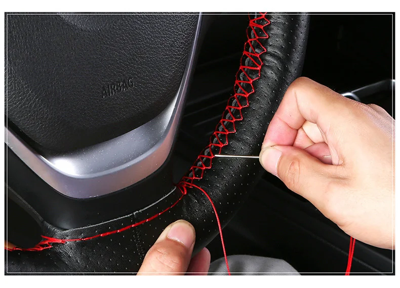 Автомобильные чехлы для руля DIY, оплетка из натуральной кожи на руле автомобиля с иглой и нитью, аксессуары для интерьера